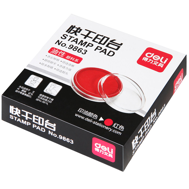 得力快干印台油性红蓝色海绵垫芯盒装圆形小号橡皮章速干印泥盒便携式收纳盒手指手印指纹公章印章盒办公9863