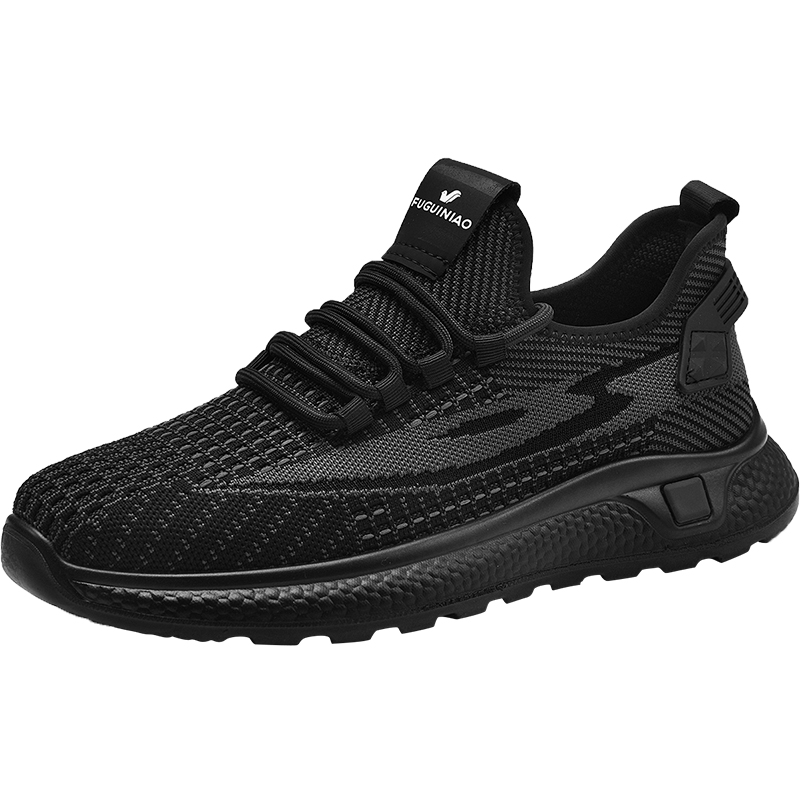 富贵鸟椰子鞋男秋季透气轻便黑色软底网面鞋男防臭休闲跑步运动鞋