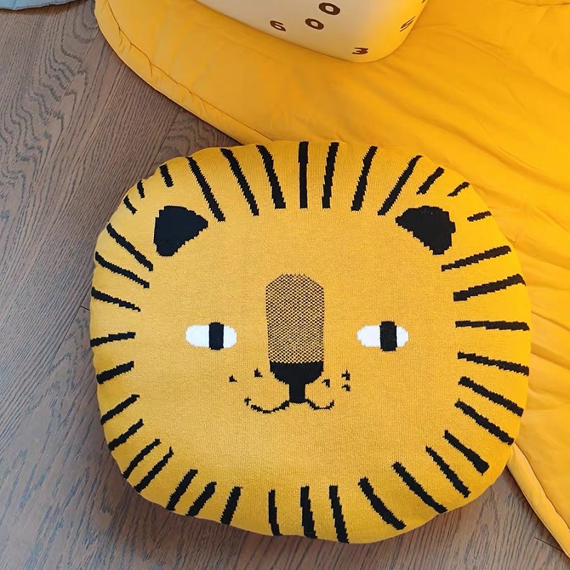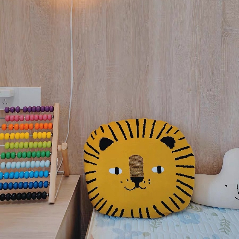 INS丹麦针织狮子抱枕儿童房卡通沙发靠枕坐垫纯棉北欧家居枕圆形