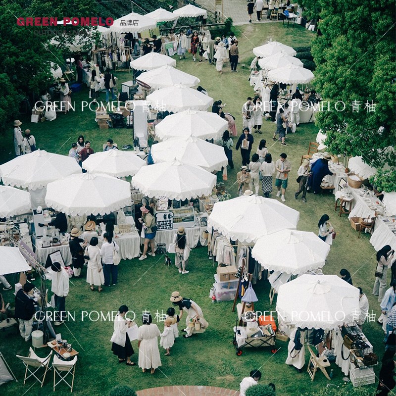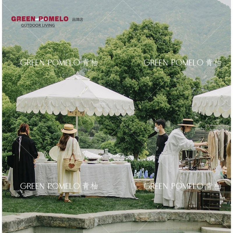 青柚户外伞网红婚礼双层白色咖啡厅庭院市集摆摊中柱伞室外遮阳伞