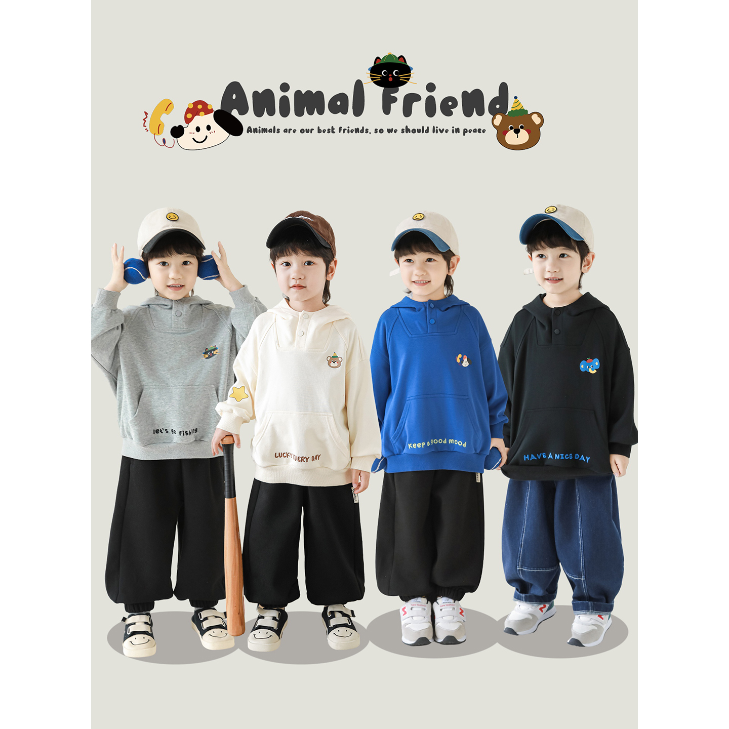 幼悠童装男童连帽卫衣秋装儿童卡通上衣春秋2025新款男孩痞帅潮酷
