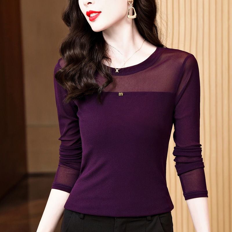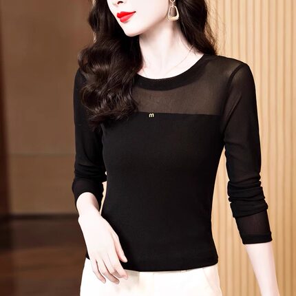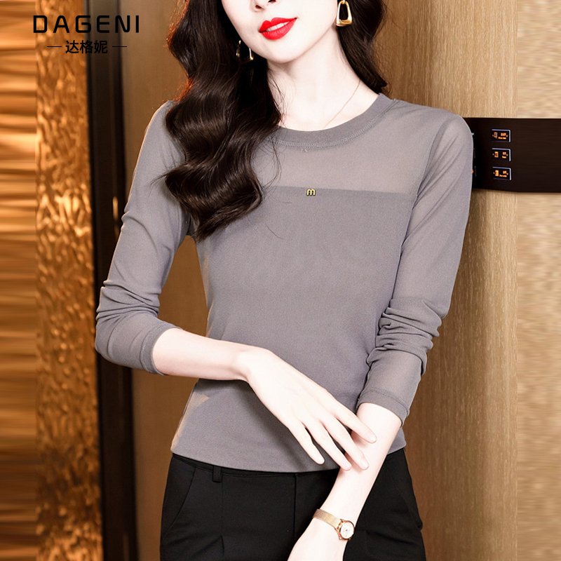 圆领网纱打底衫女内搭秋季2025