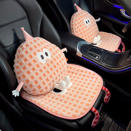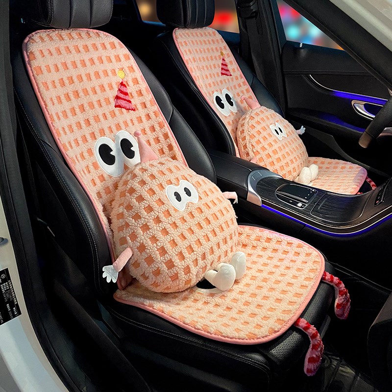 汽车坐垫冬季毛绒单片粉色大眼车内座椅加热座垫冬天加绒后排座套