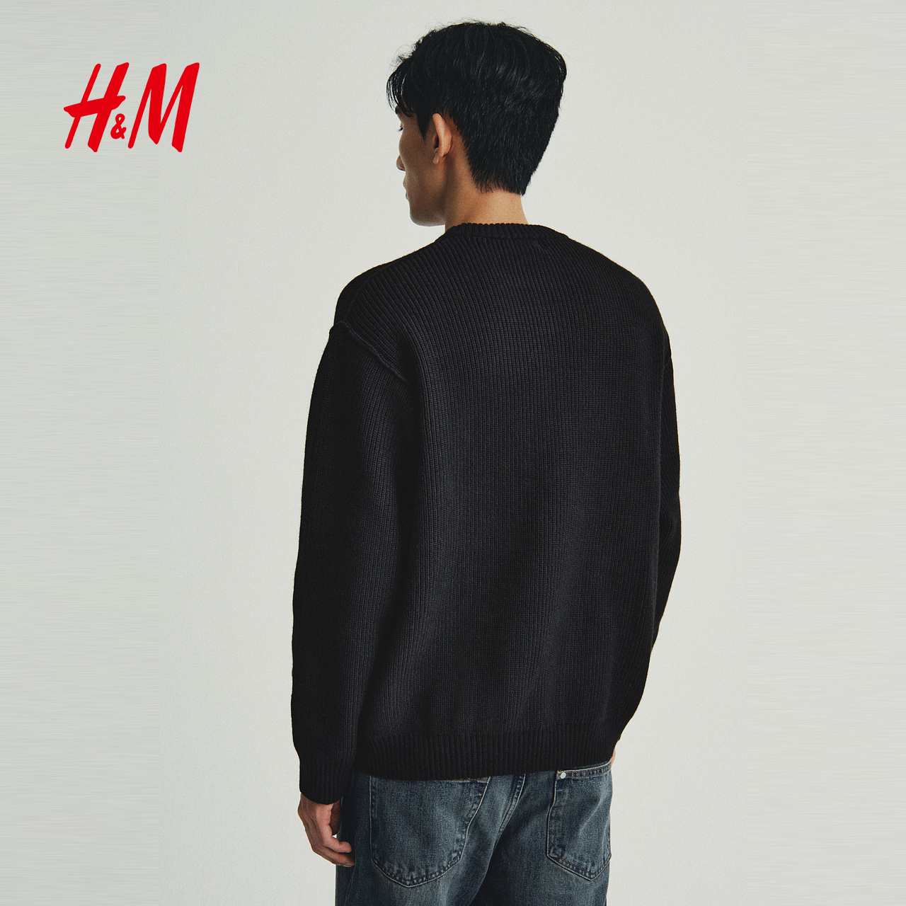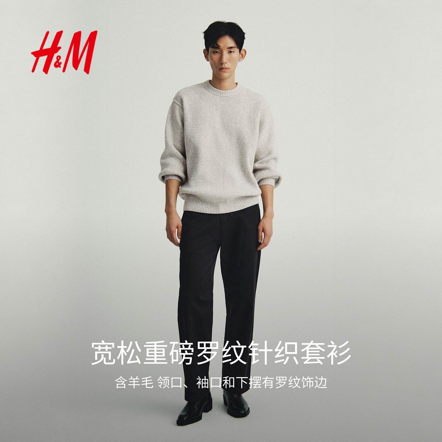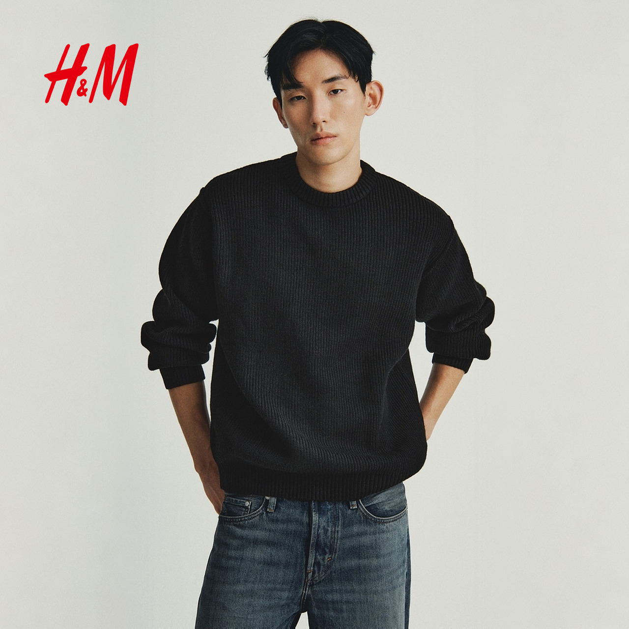 HM男装女装针织衫25秋冬宽松内搭打底衫情侣毛衣圆领套衫1300943