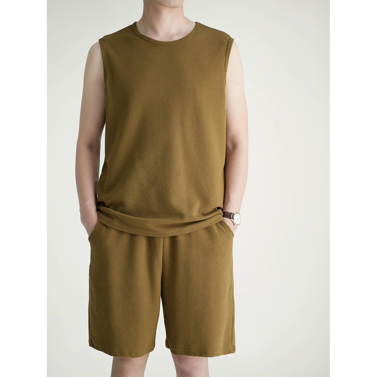 定织 男士华夫格短裤 纯色薄款宽松休闲裤 百搭五分裤 夏款 男装