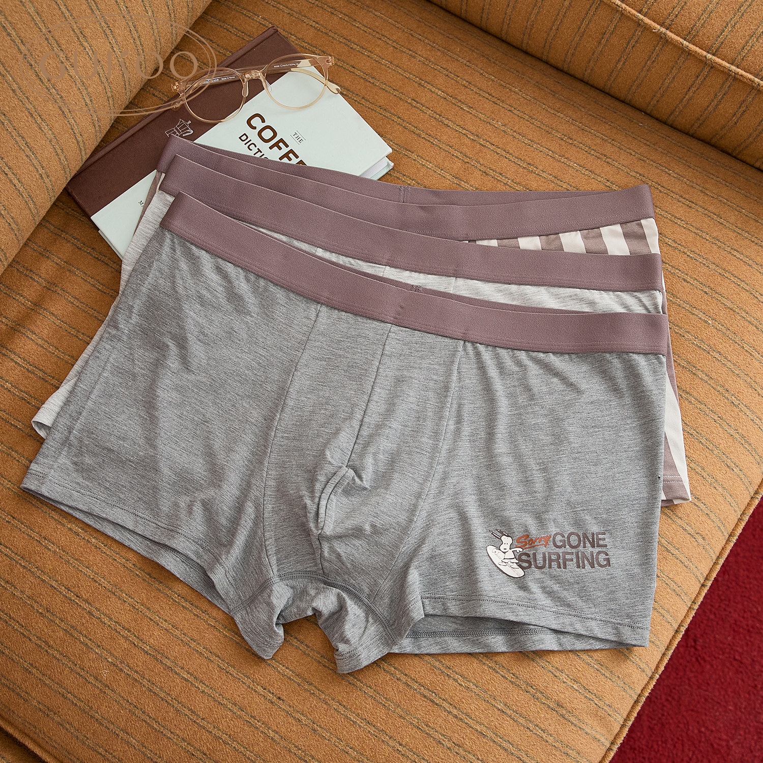 Gukoo/果壳内裤男春夏史努比联名新款条纹莫代尔男士内裤组合