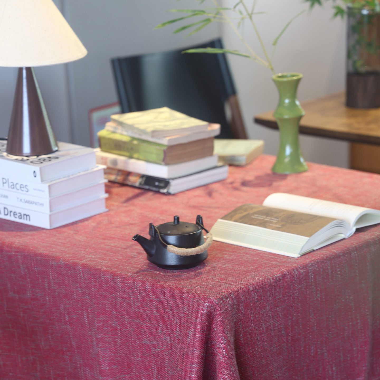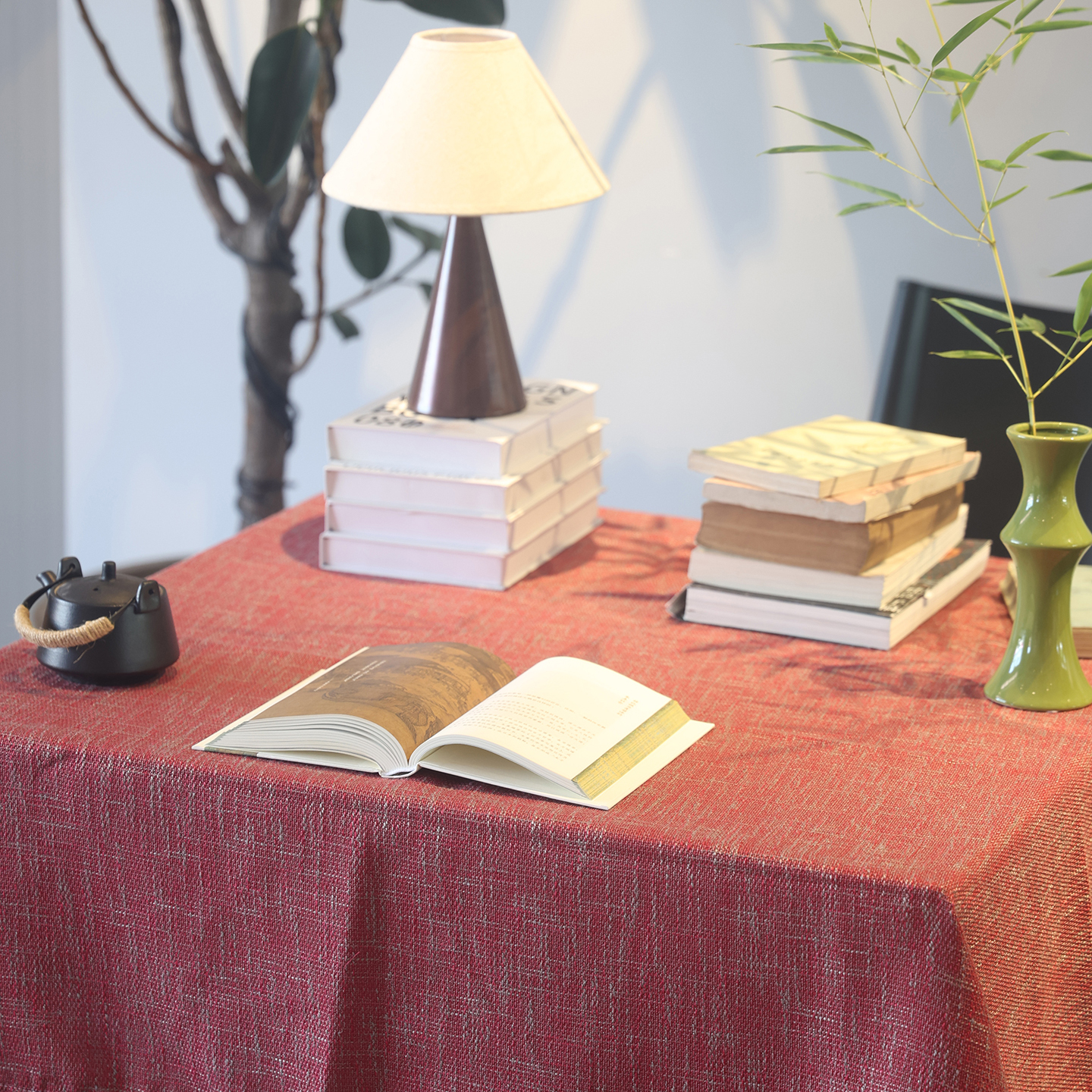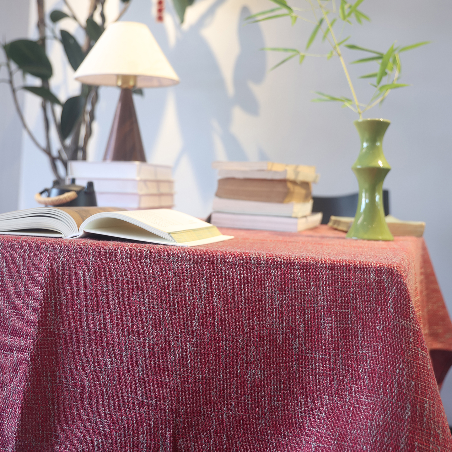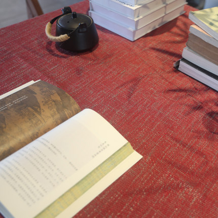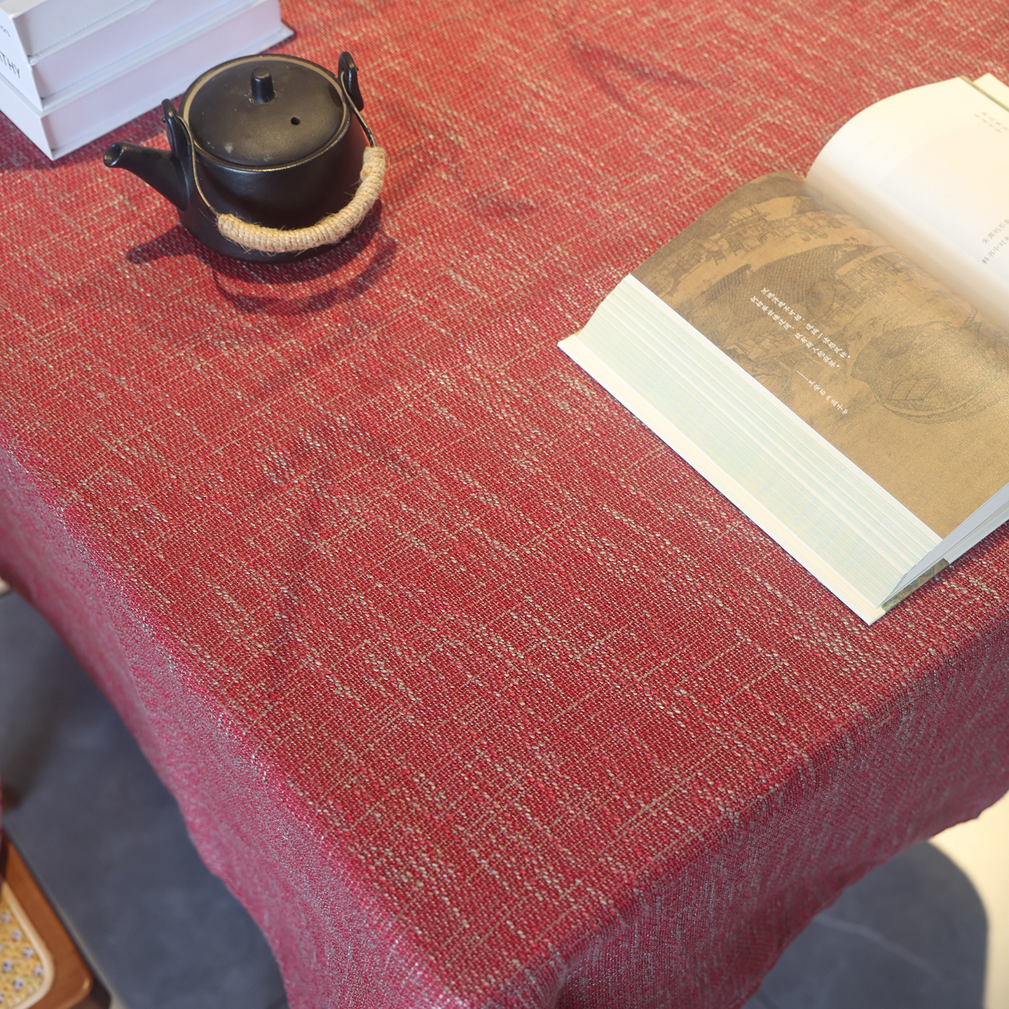 麻布感粗麻桌布红色国风餐桌布
