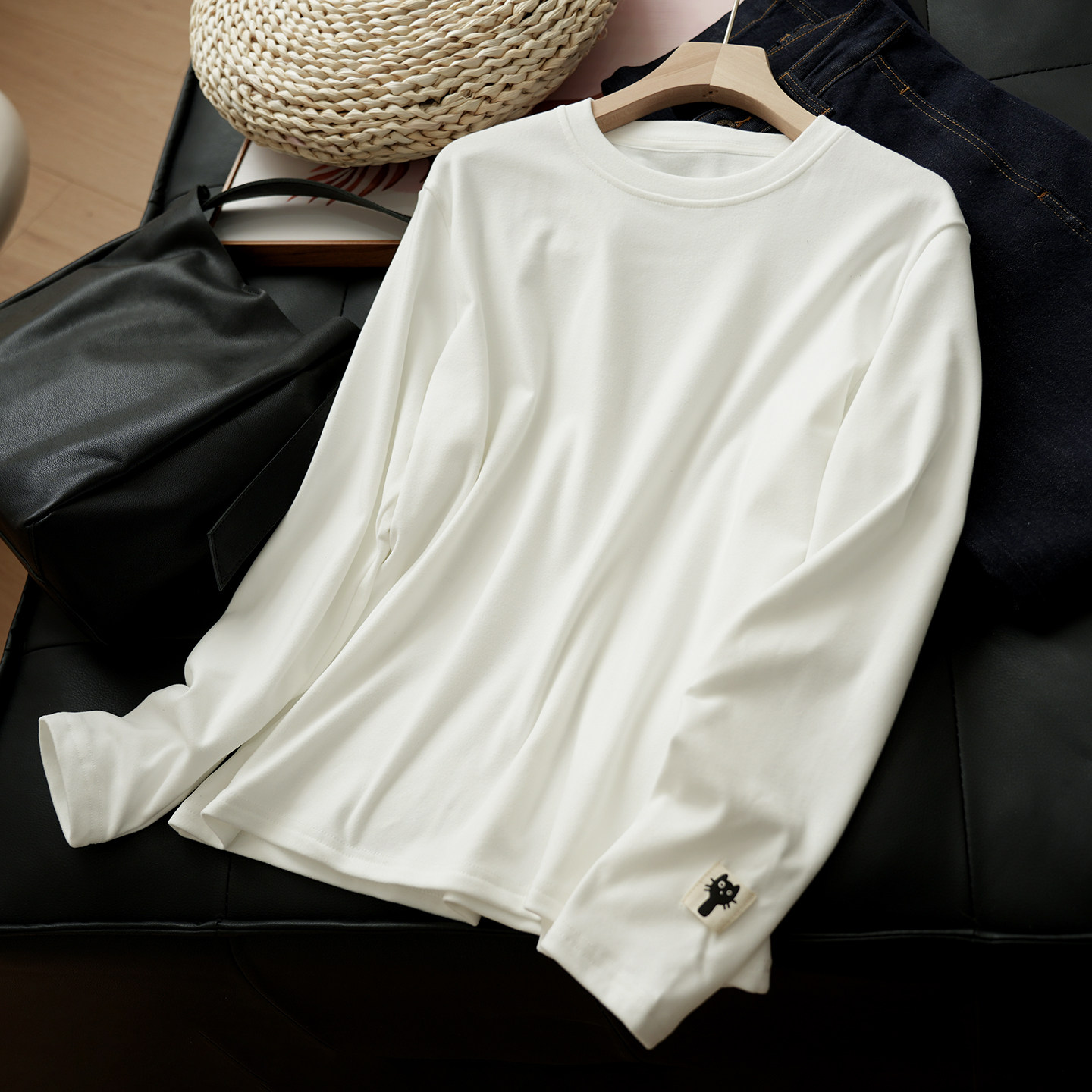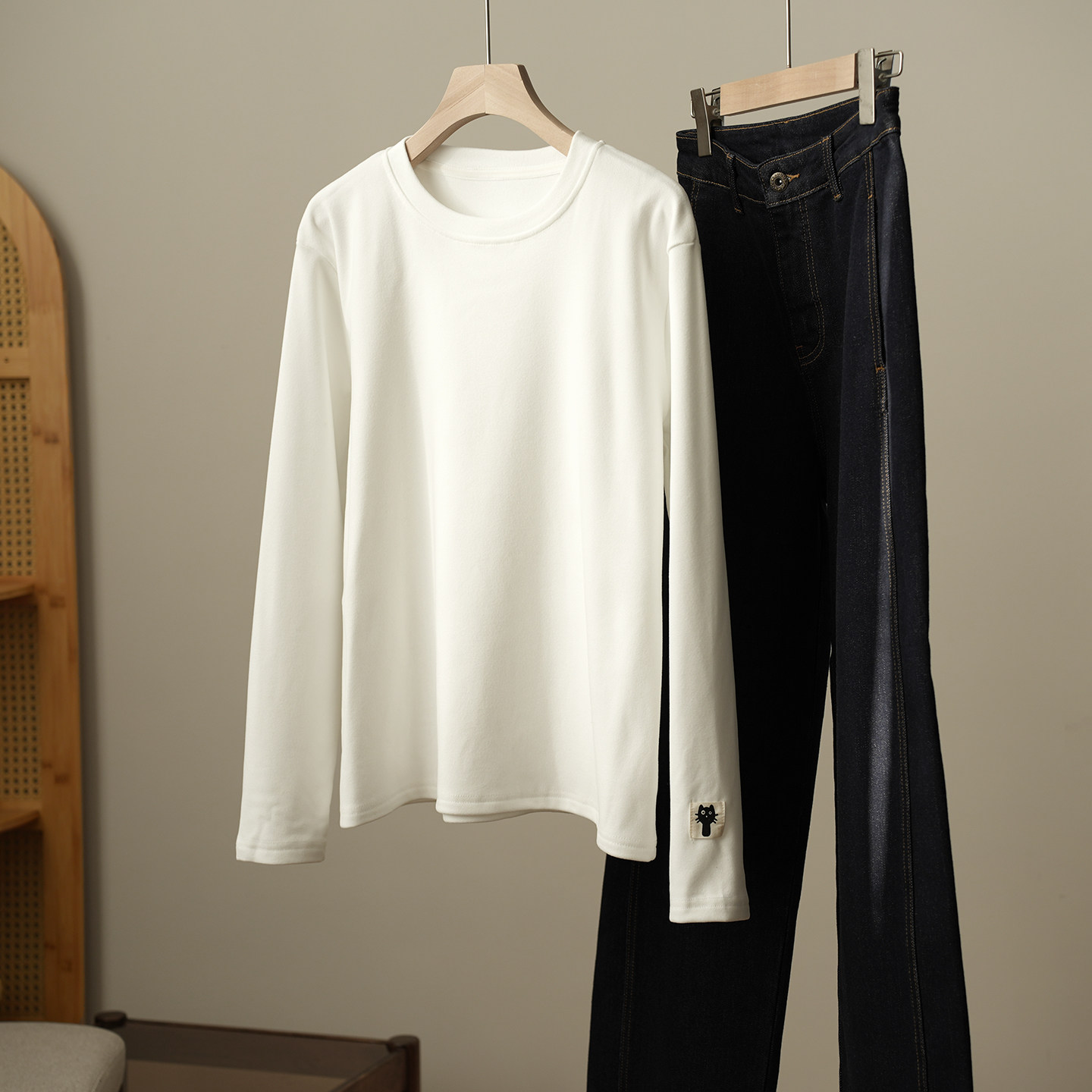 300g 双面糯米绒 女士圆领长袖T恤 宽松百搭打底衫上衣 秋冬款