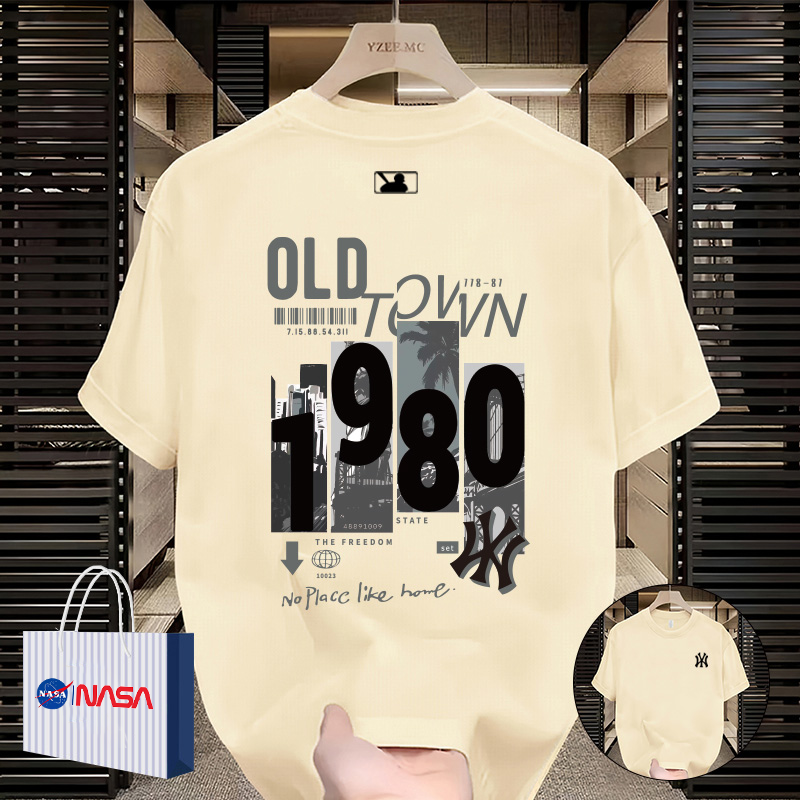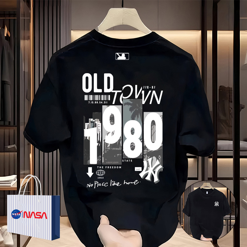NASA联名100%纯棉短袖T恤男士重磅打底衫加大码夏季圆领印花上衣