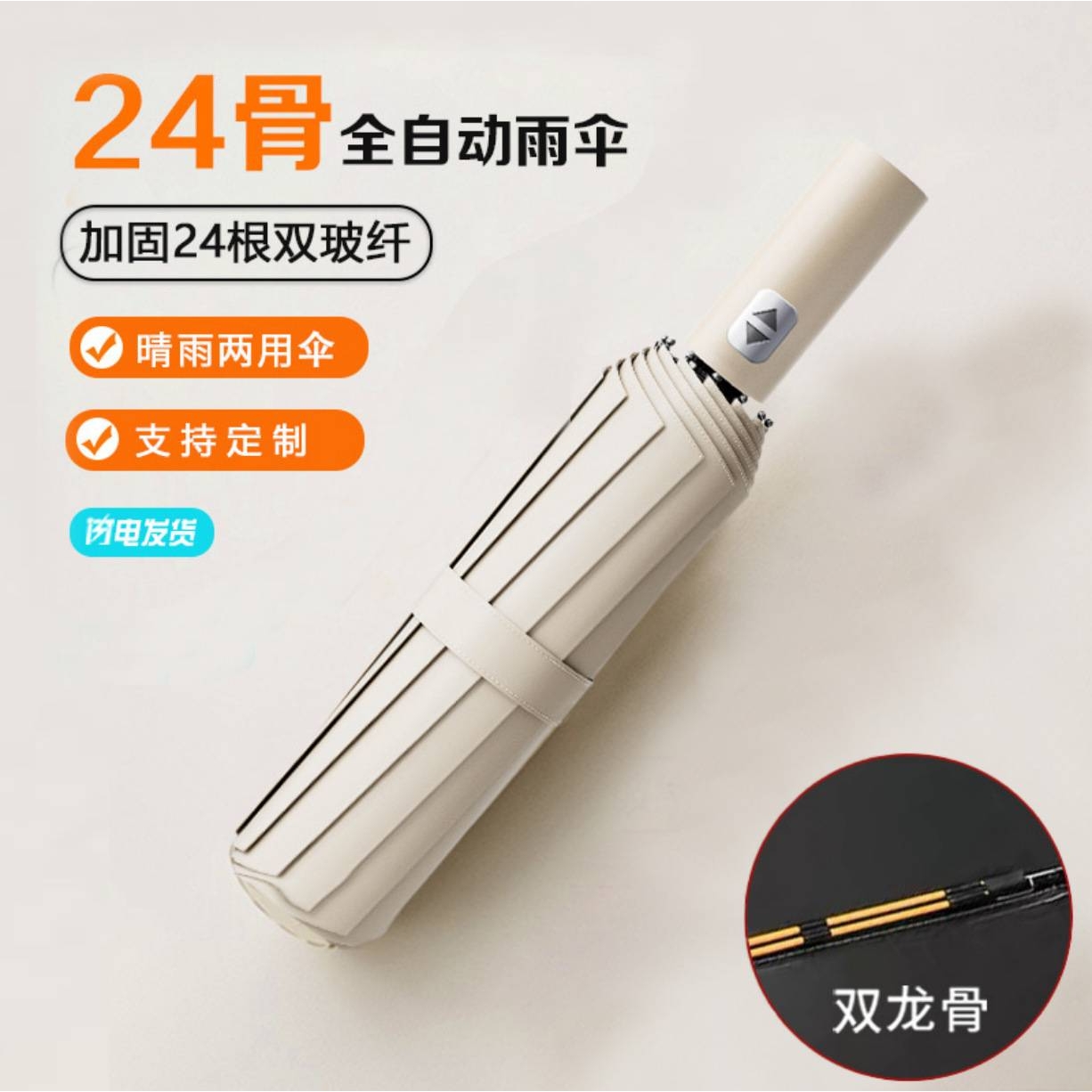24骨全自动折叠黑胶晴雨伞加固防晒紫外线遮阳伞雨伞广告伞