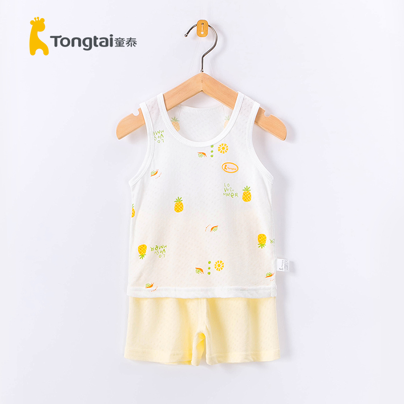 童泰男女宝宝夏装背心短裤孩子婴幼儿凉爽薄款莫代尔棉外出套装