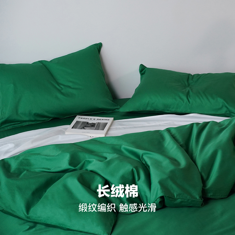 80支仙踪绿长绒棉轻奢贡缎四件套