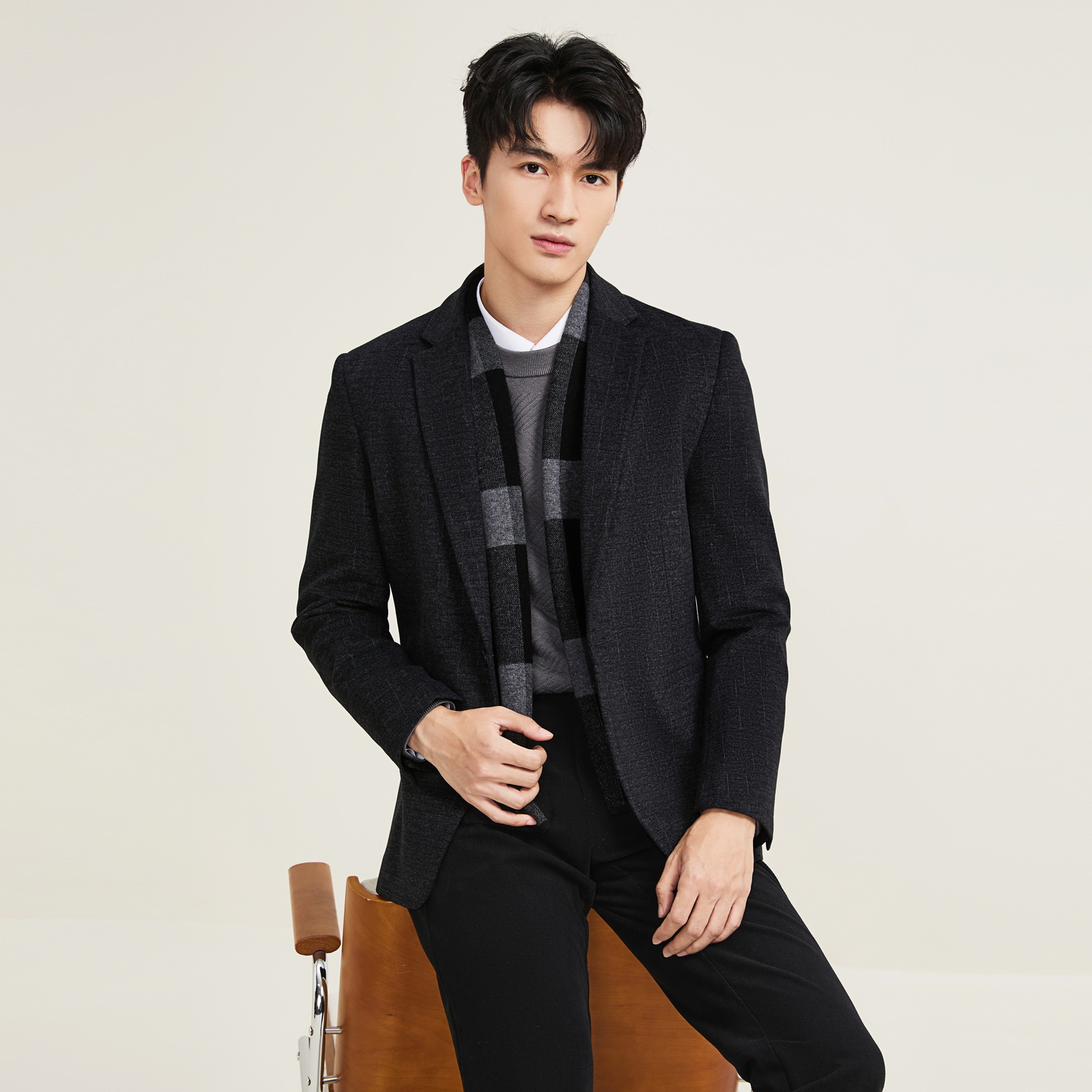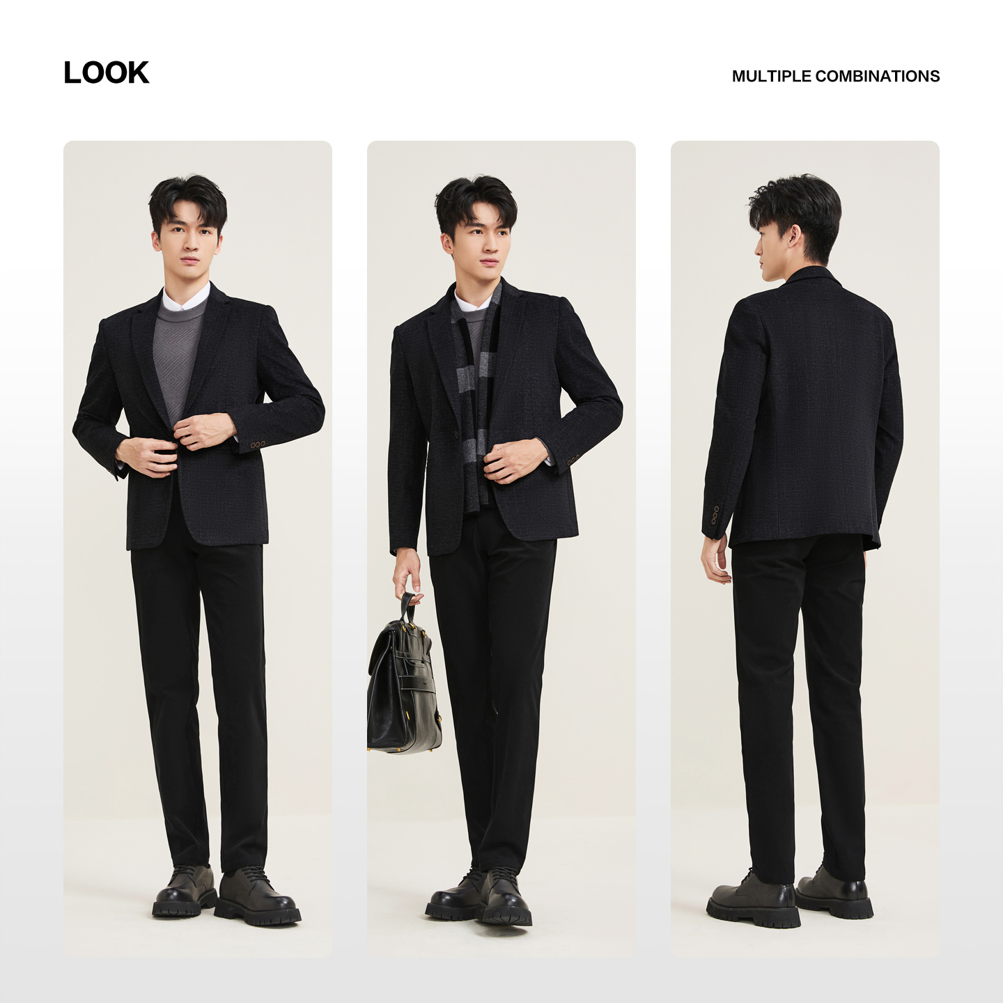 【休闲单西】柒牌西服外套2025秋冬新款修身提花一粒扣西装上衣