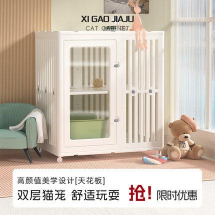 室内猫别墅猫柜子厕所一体猫窝超大空间双层猫笼子带亚克力门爪墅