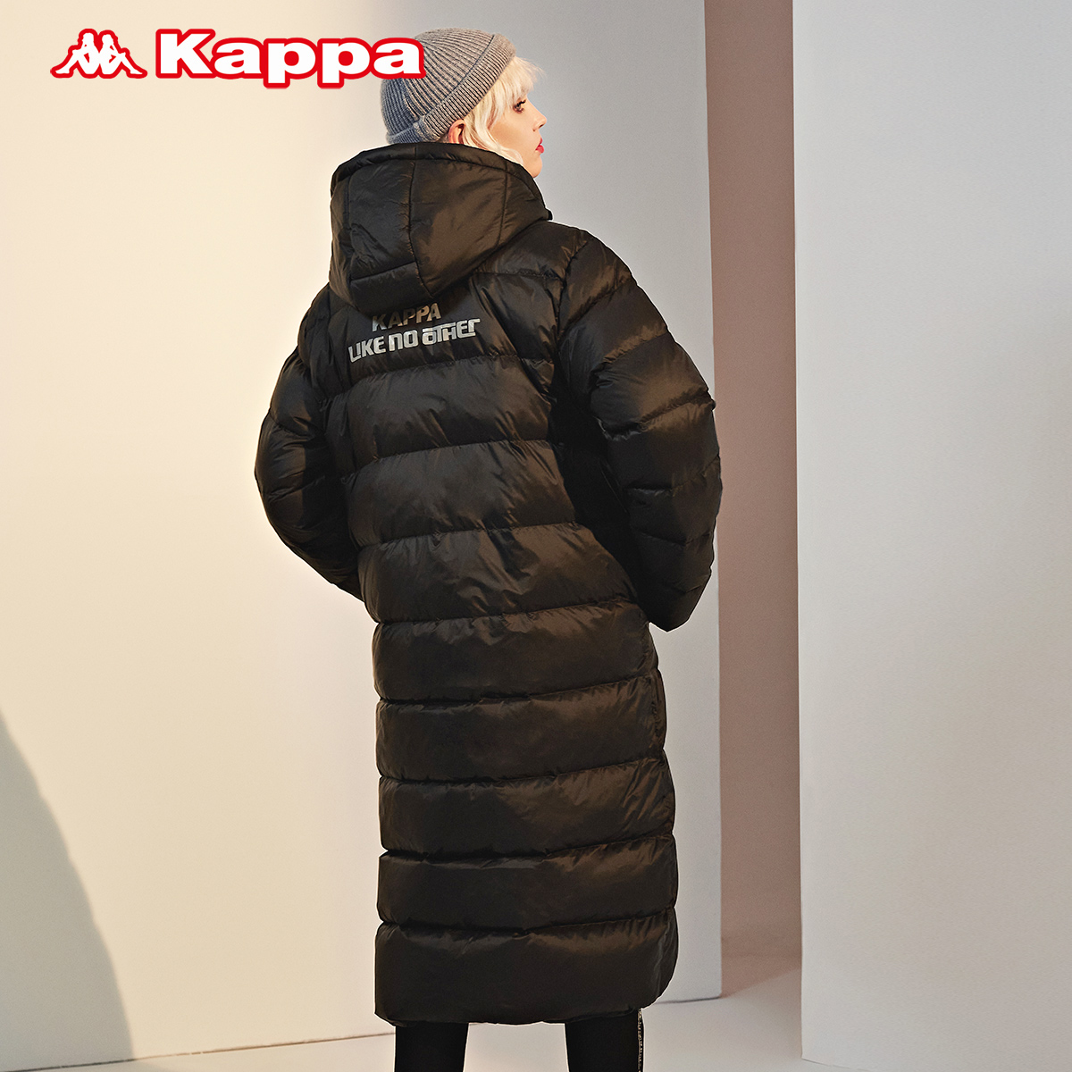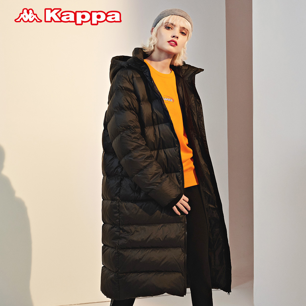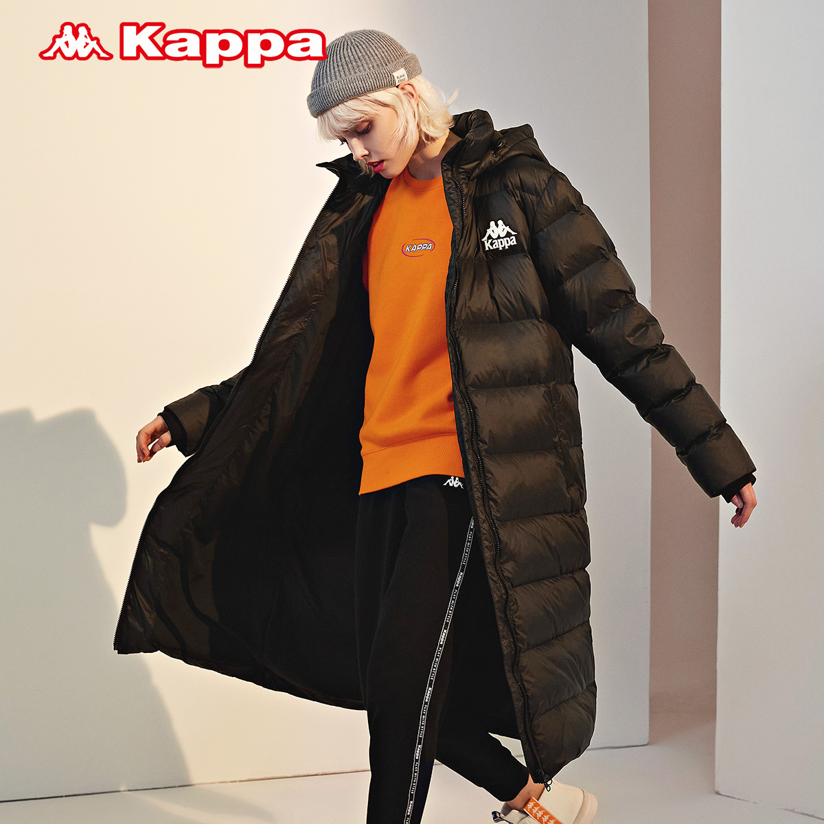 Kappa卡帕长款羽绒服情侣连帽防寒加厚外套冬K0AZ2YY66D