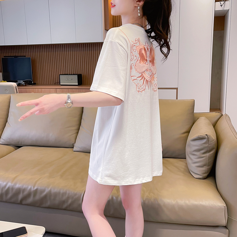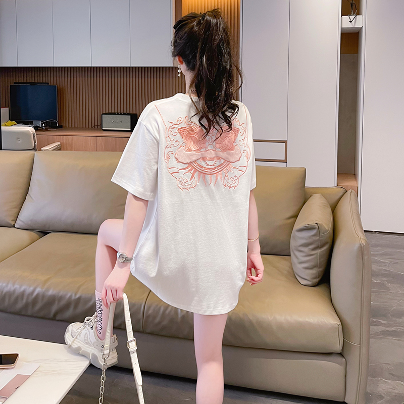 设计感小众短袖t恤女夏韩版宽松大码中长款新中式中国风百搭上衣