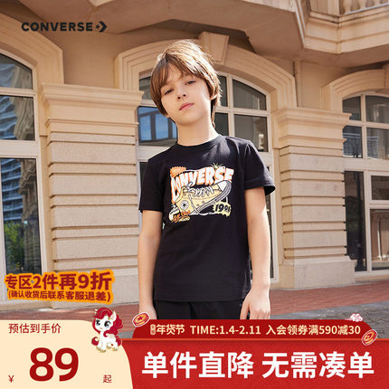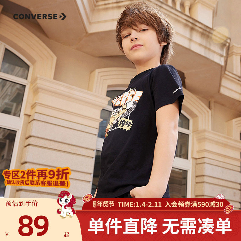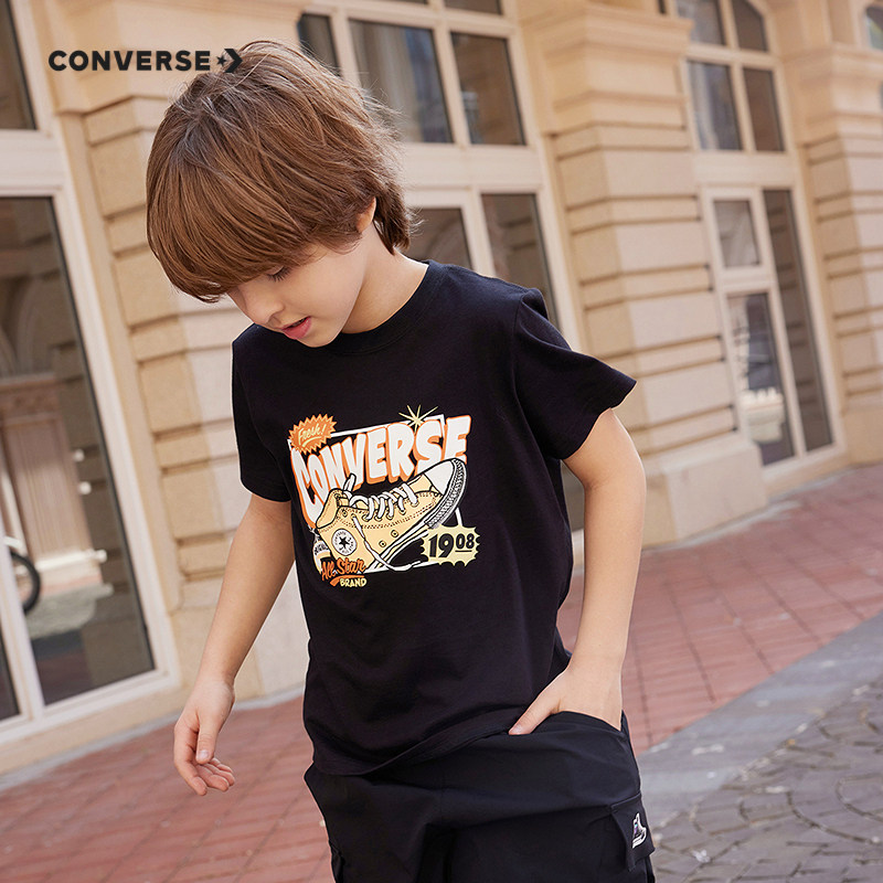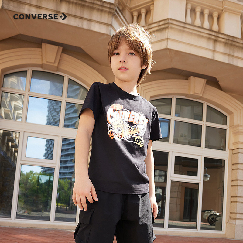 Converse匡威儿童童装男童短袖T恤2025夏季童装中大童休闲打底衫