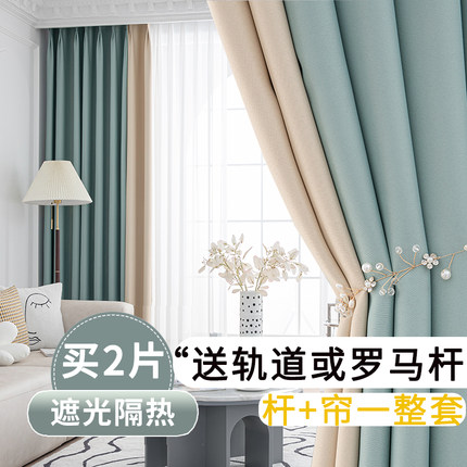 窗帘2023年新款客厅卧室全遮光布带杆全套落地送罗马杆免打孔安装