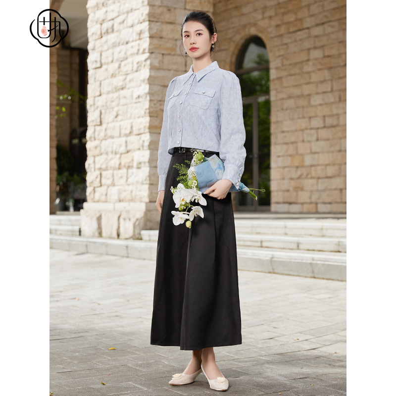 固执秋季新款学院风简约高腰显瘦长款a字半身裙33033BQ08568