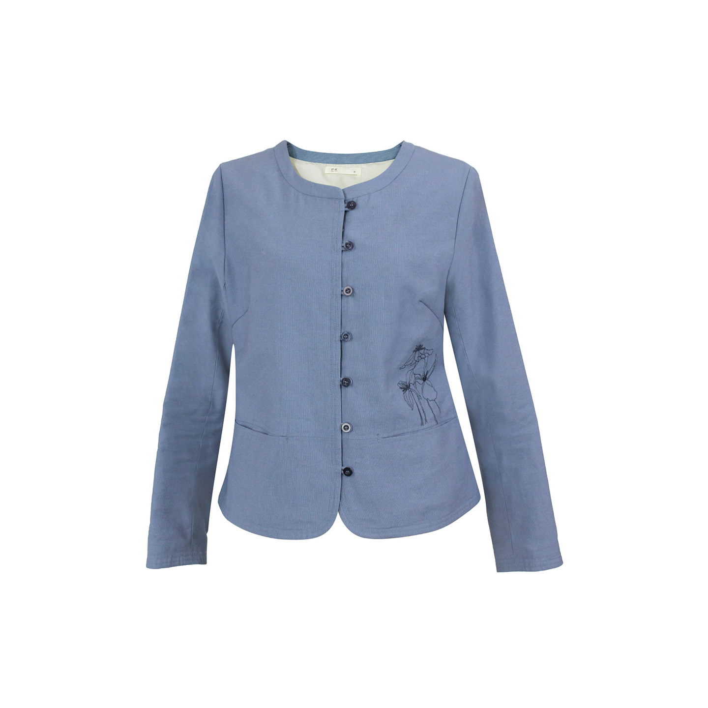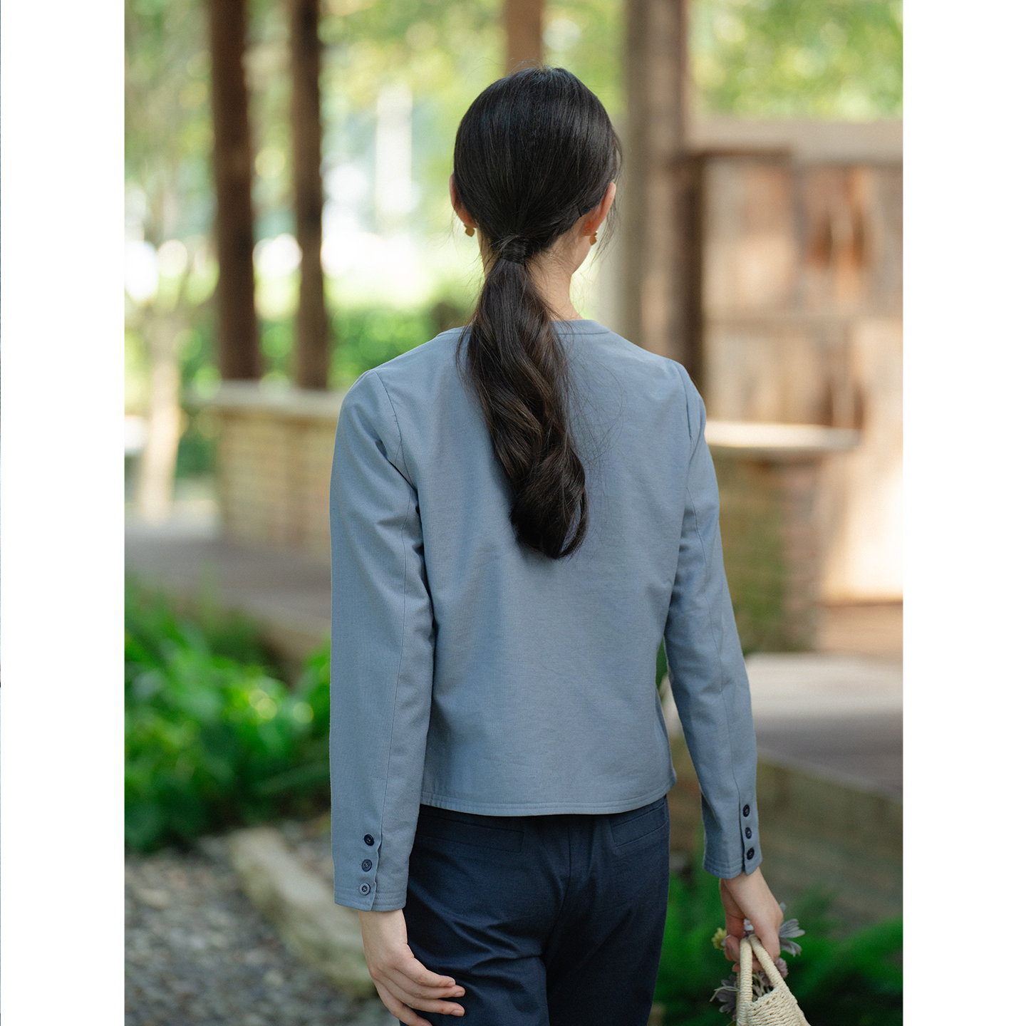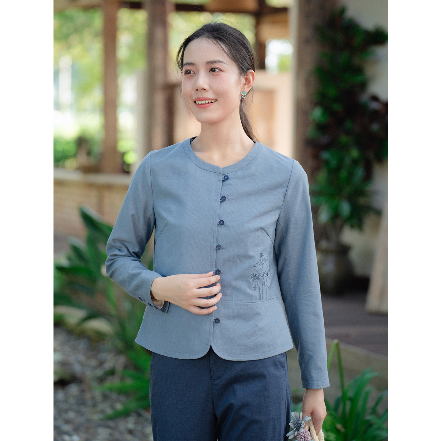 纻衣蓝色刺绣休闲文艺外套短款小个子女2025秋装新款通勤百搭上衣