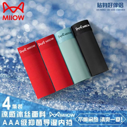 猫人男士内裤冰丝四角裤无痕夏季薄款红色平角短裤衩男款速干透气