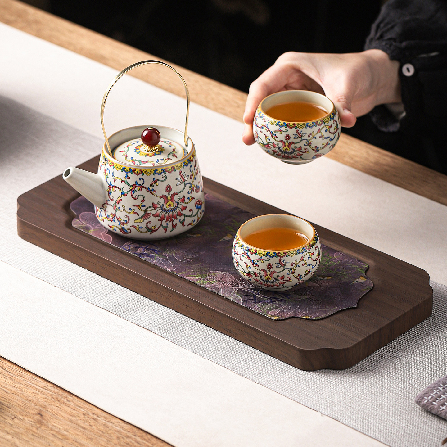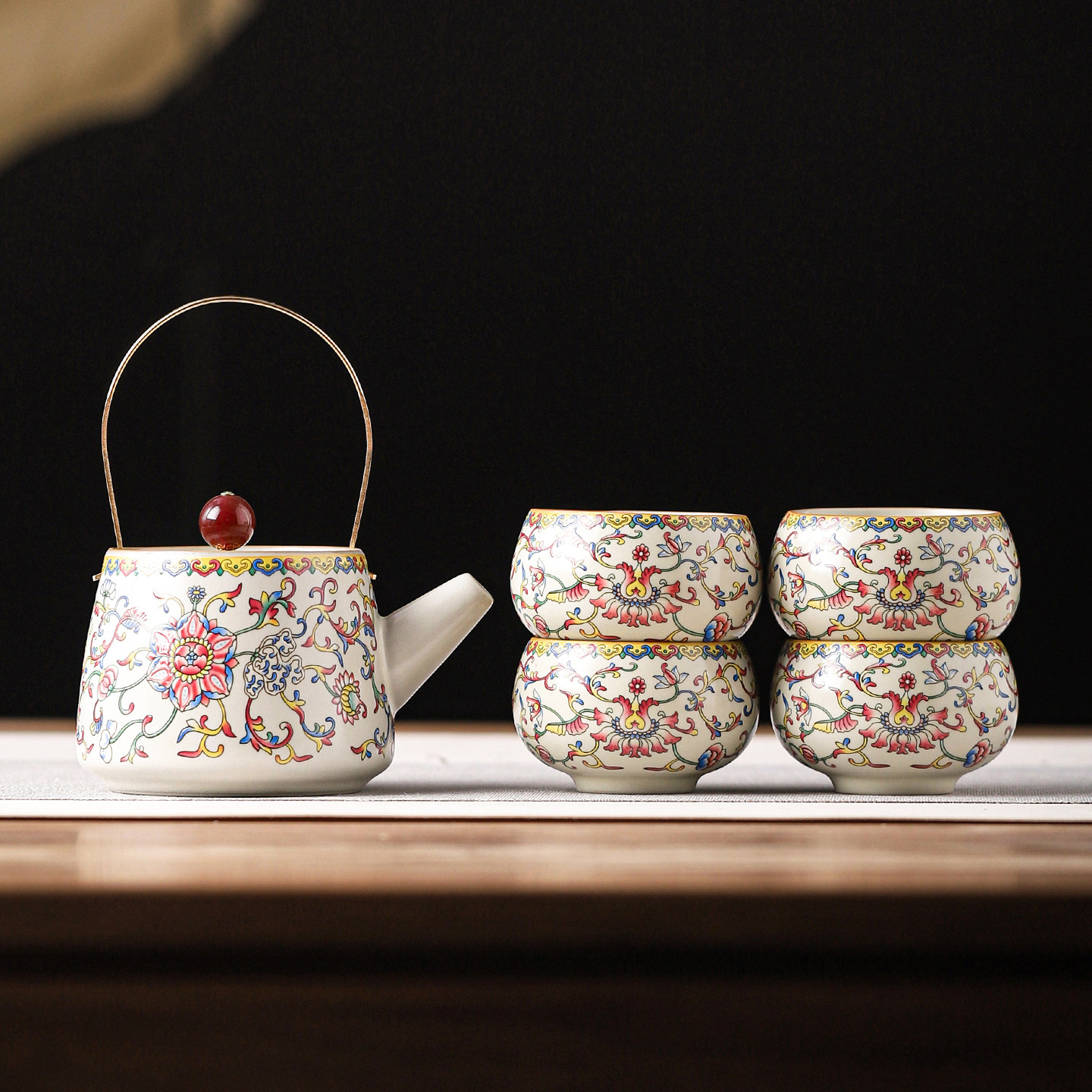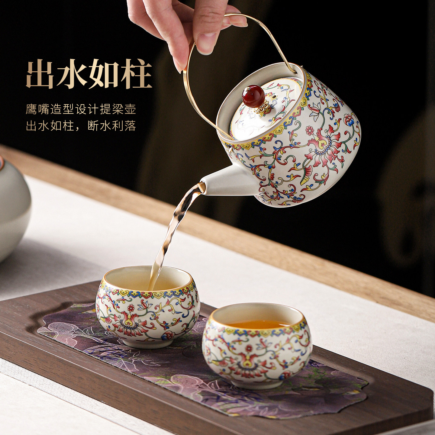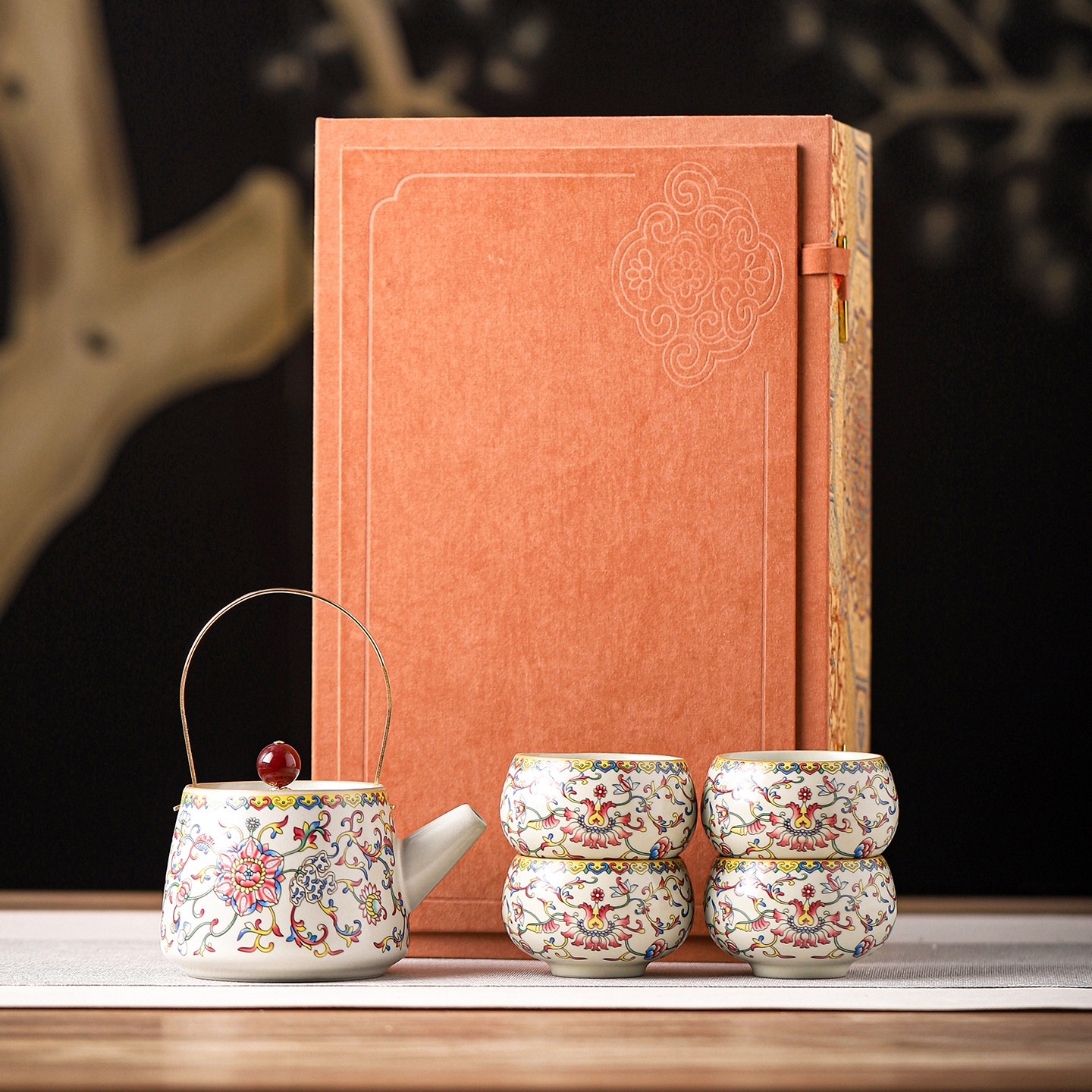 汝窑一壶四杯功夫茶具提梁壶送长辈送人高档茶壶茶杯乔迁新居礼物
