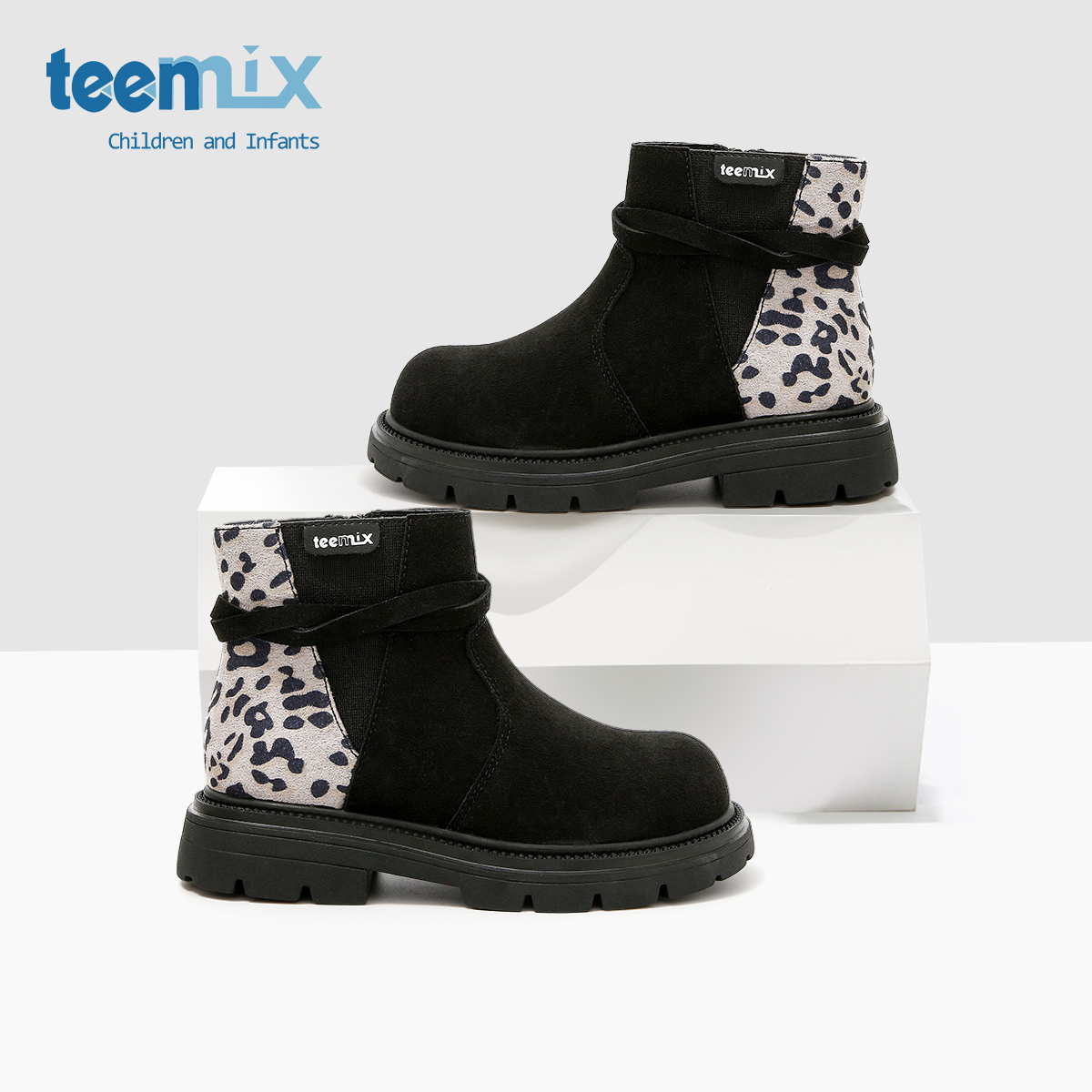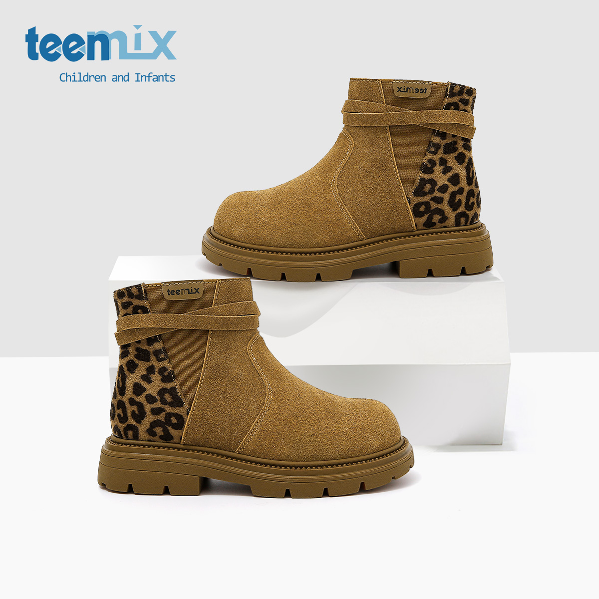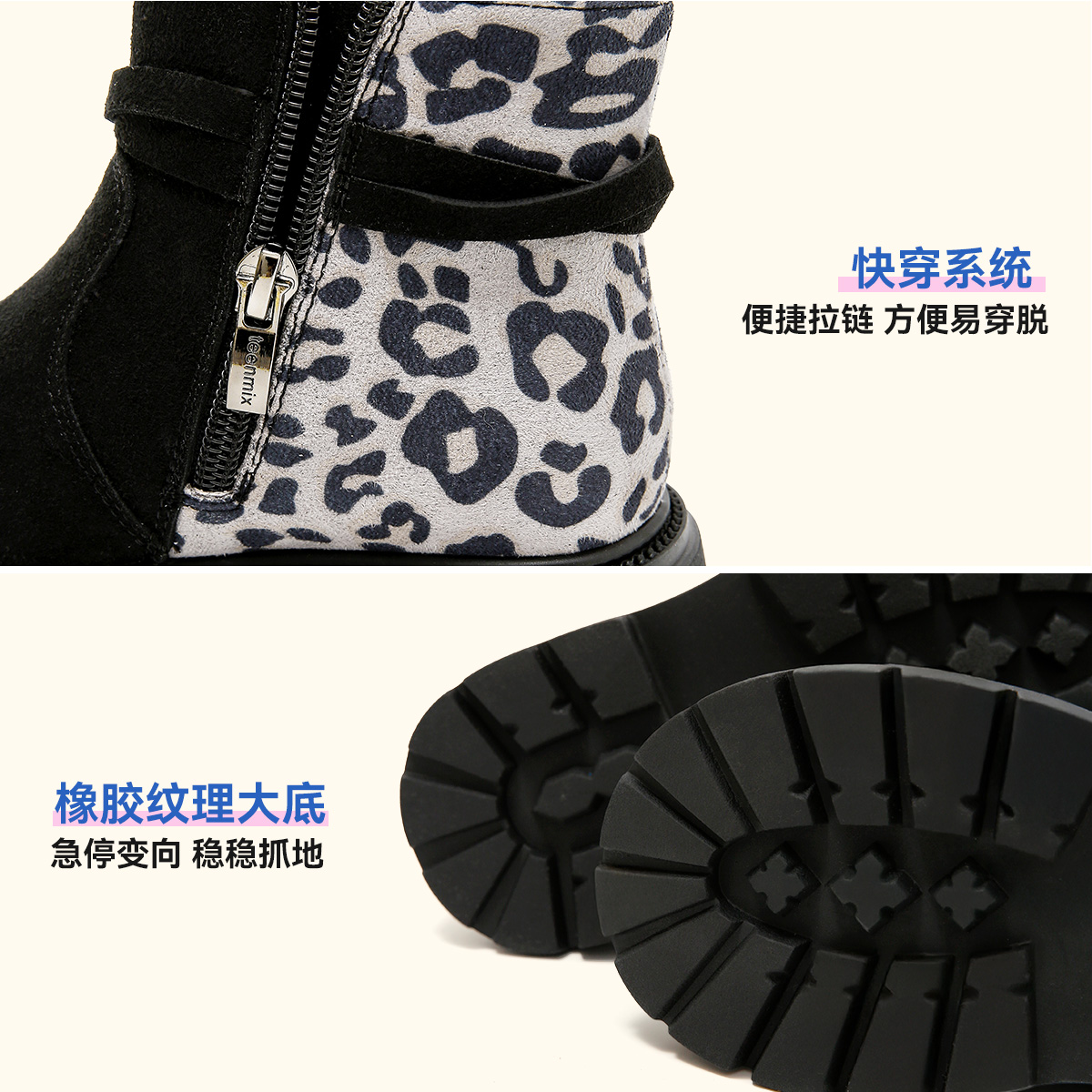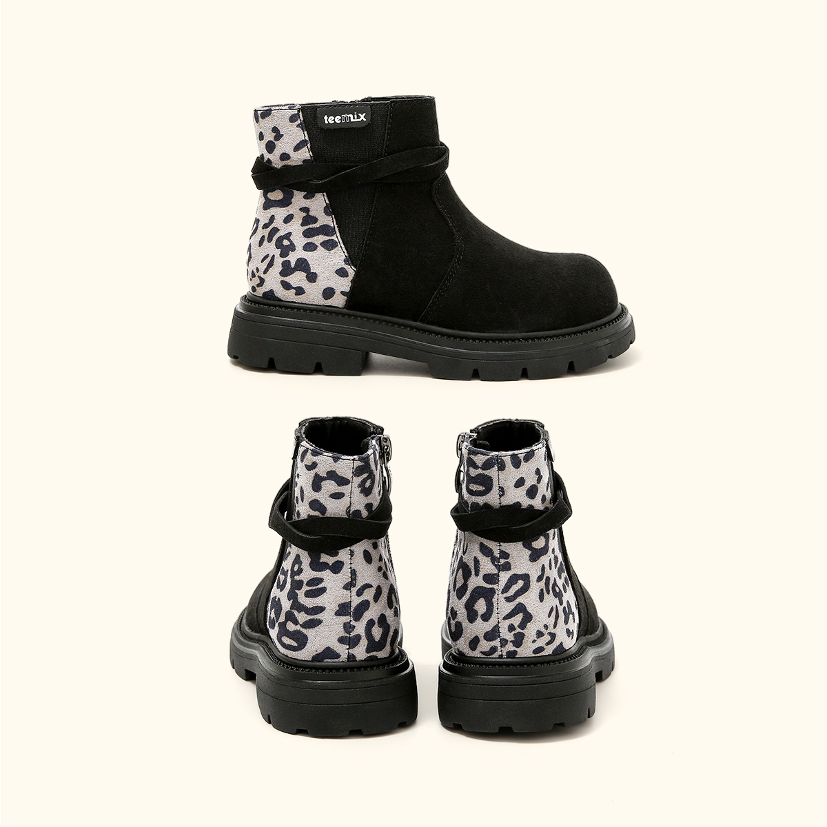 天美意童鞋儿童马丁靴2025秋冬新款男女童工装靴宝宝豹纹大黄靴子