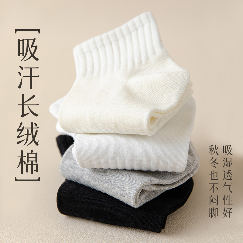 诸暨女士纯棉短袜薄款白色运动袜透气防臭中筒袜男短筒袜袜子吸汗