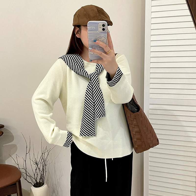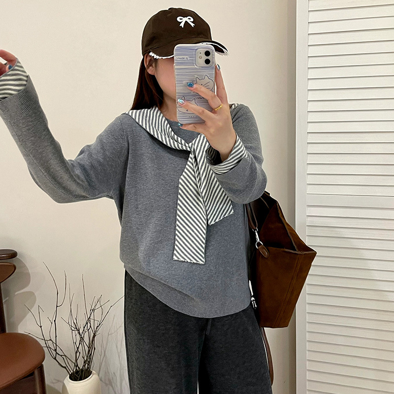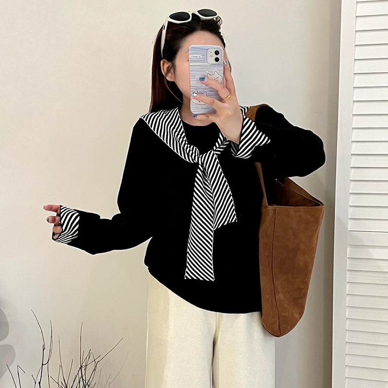 大码女装圆领拼接长袖上衣披肩两件套2025秋胖mm休闲针织衫23605