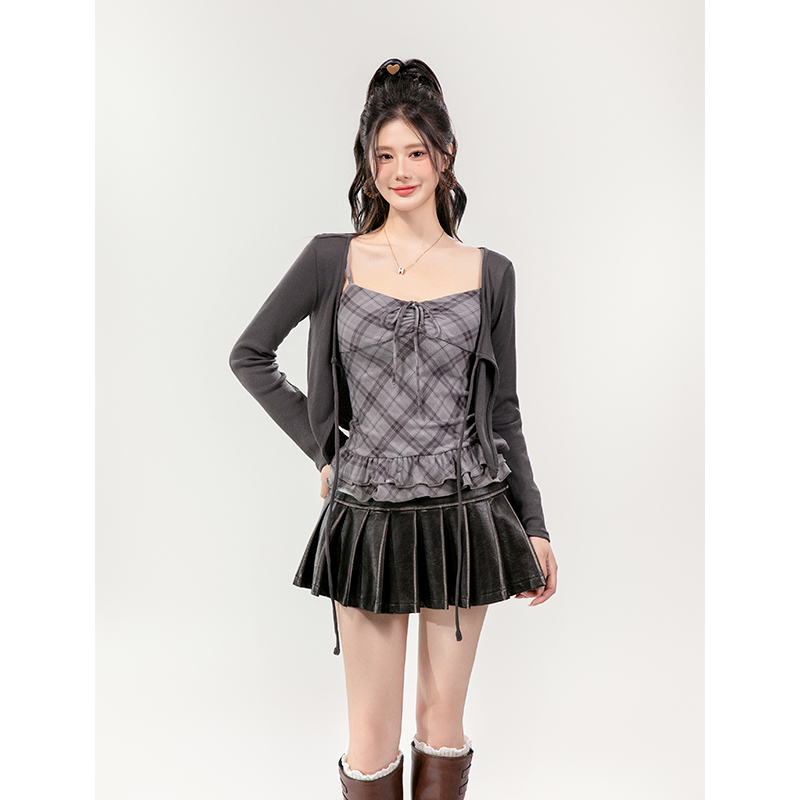 纯欲甜辣短款格子吊带背心连衣裙女2025春季新款吊带裙开衫两件套