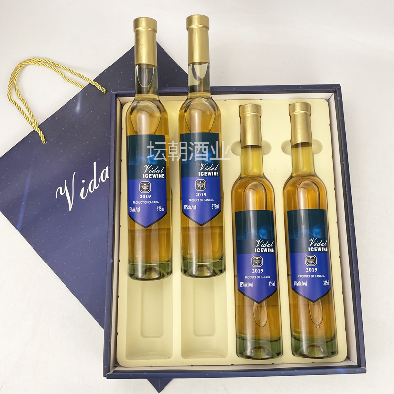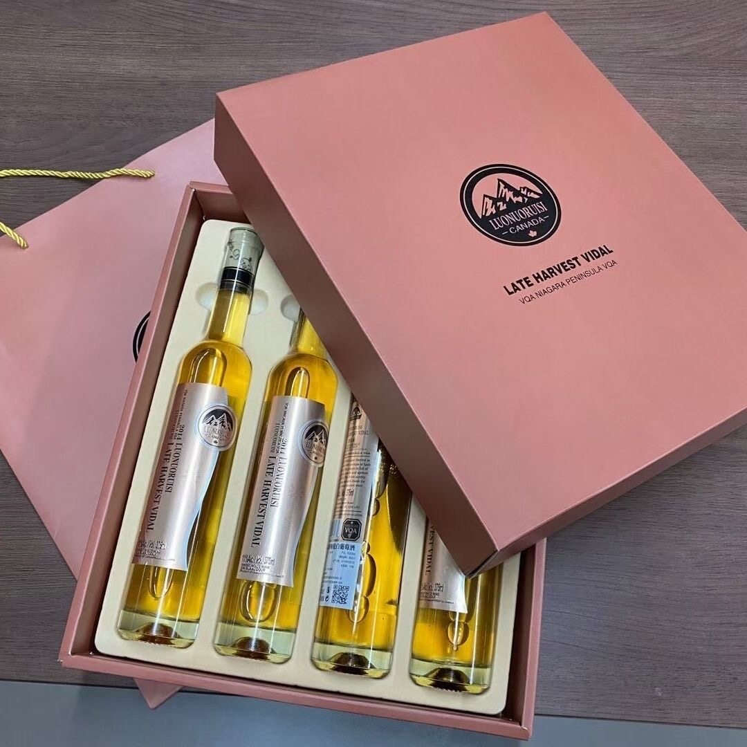 加拿大进口晚收冰酒甜白葡萄酒女士微醺甜酒4支礼盒装高档送礼酒