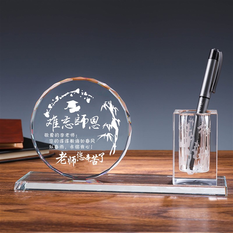 老师笔筒刻字毕业水晶司礼品周年礼E物送公m同学聚会纪念品摆桌面