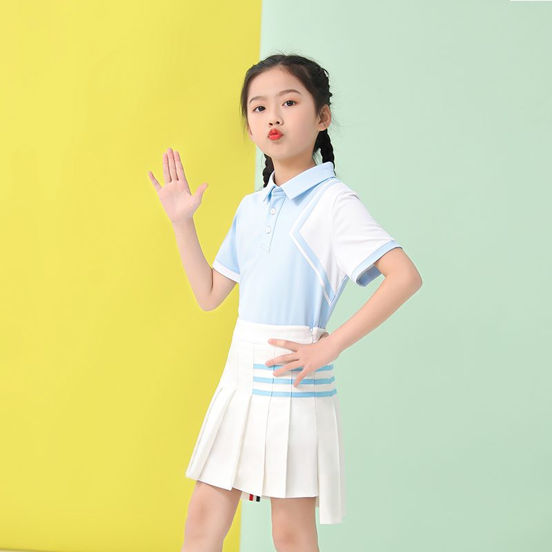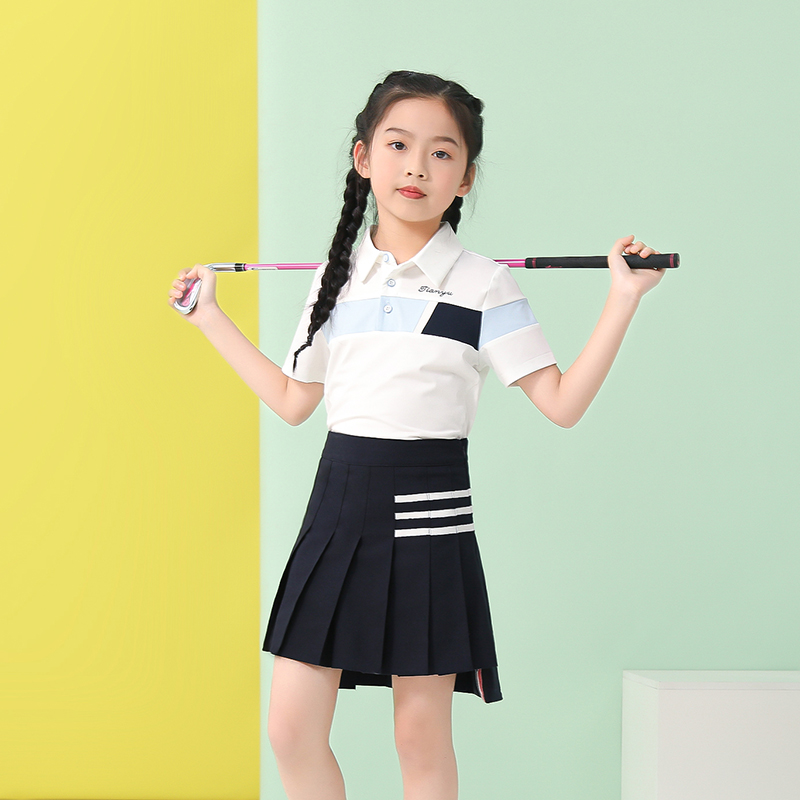 高尔夫儿童短裙女童中高腰百褶裙子学院亲子装防走光运动开叉裤裙