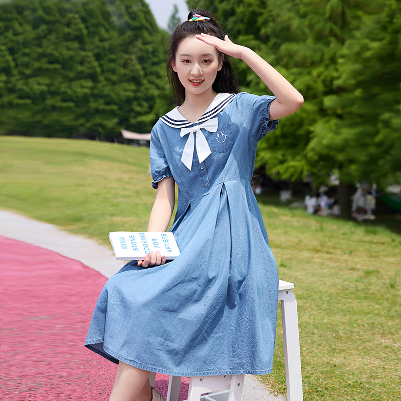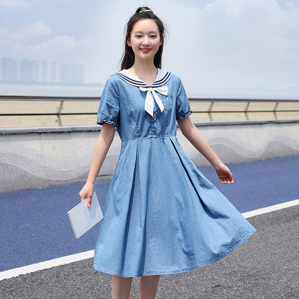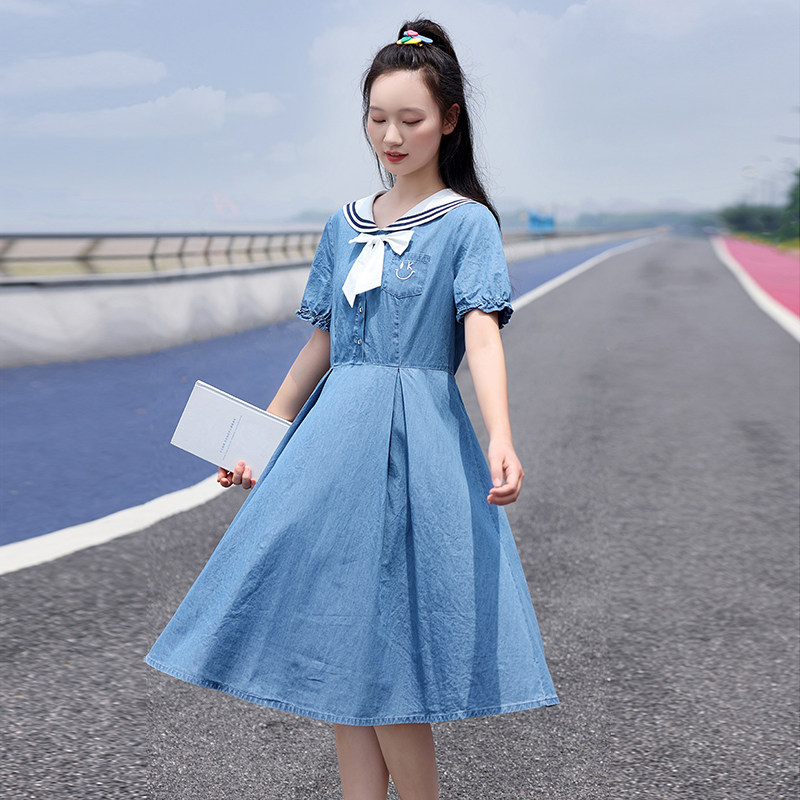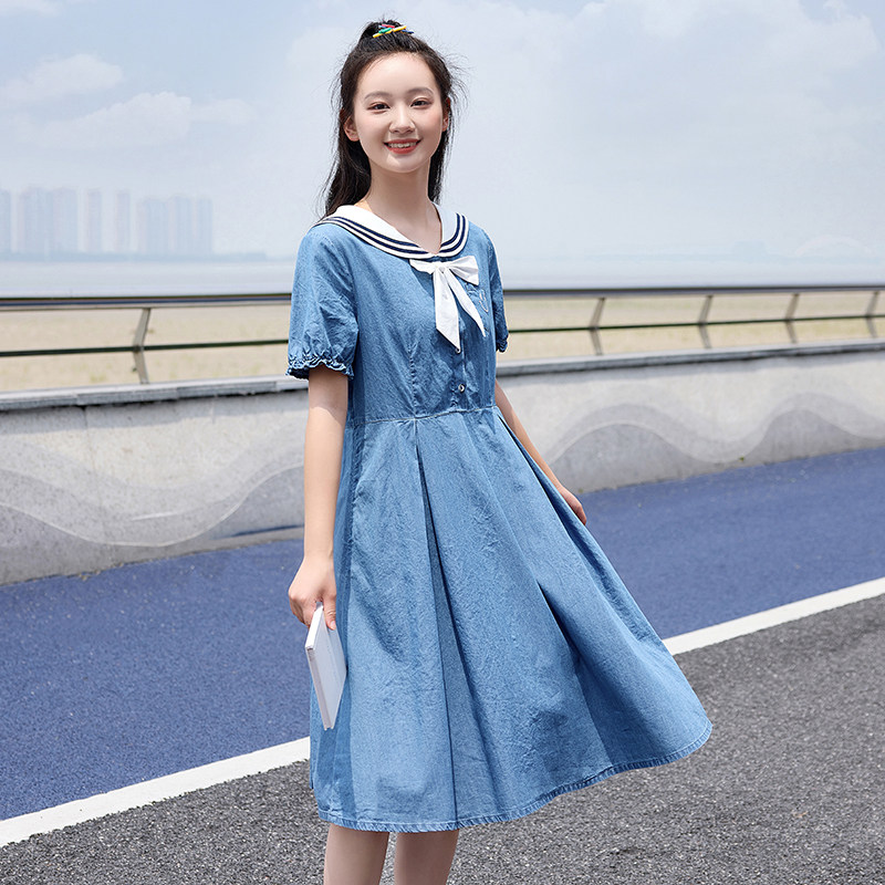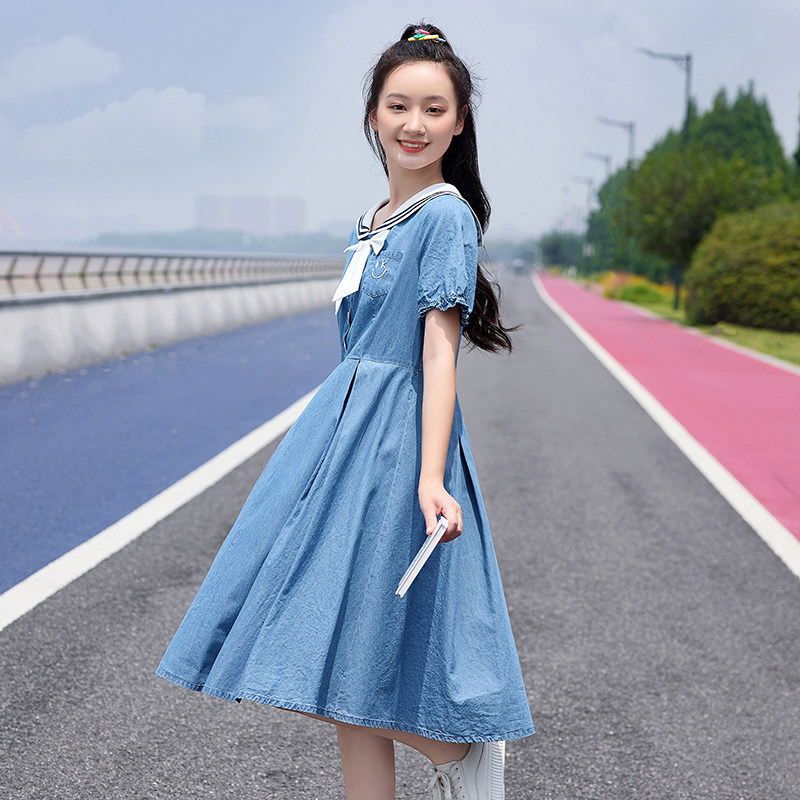 少女牛仔连衣裙夏装新款大童高中初中生13岁女孩时尚裙子学院风