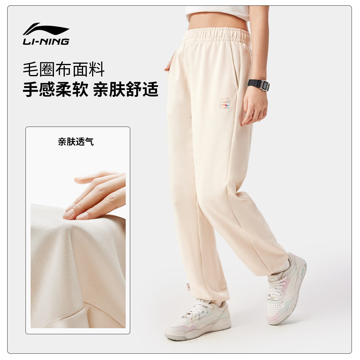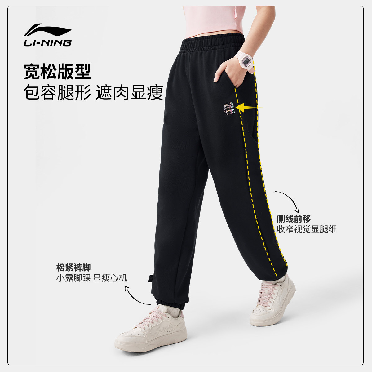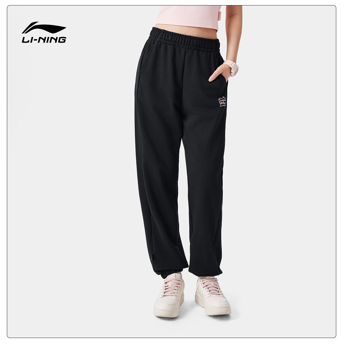 李宁运动裤女士春季跑步女裤宽松休闲裤子针织卫裤束脚运动长裤女