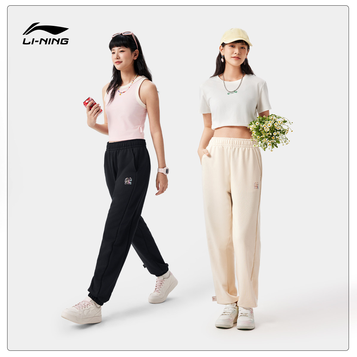 李宁宽松女印花休闲卫裤运动裤