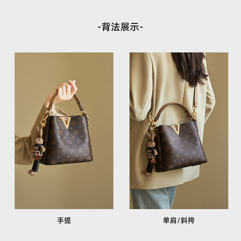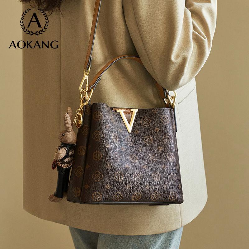 奥康女包新款水桶包轻奢印花斜挎手提单肩包高颜值时尚斜跨包