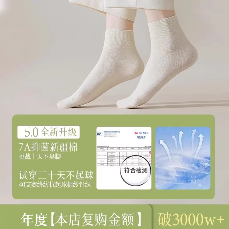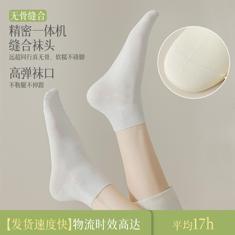 袜子女夏季薄款纯棉白色中筒袜夏天女款无骨短筒袜春秋抑菌月子袜