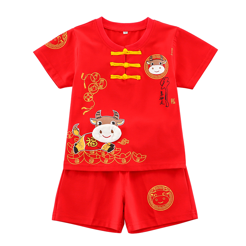宝宝唐装夏季短袖小孩周岁生日抓周礼服纯棉汉服男女儿童夏装套装