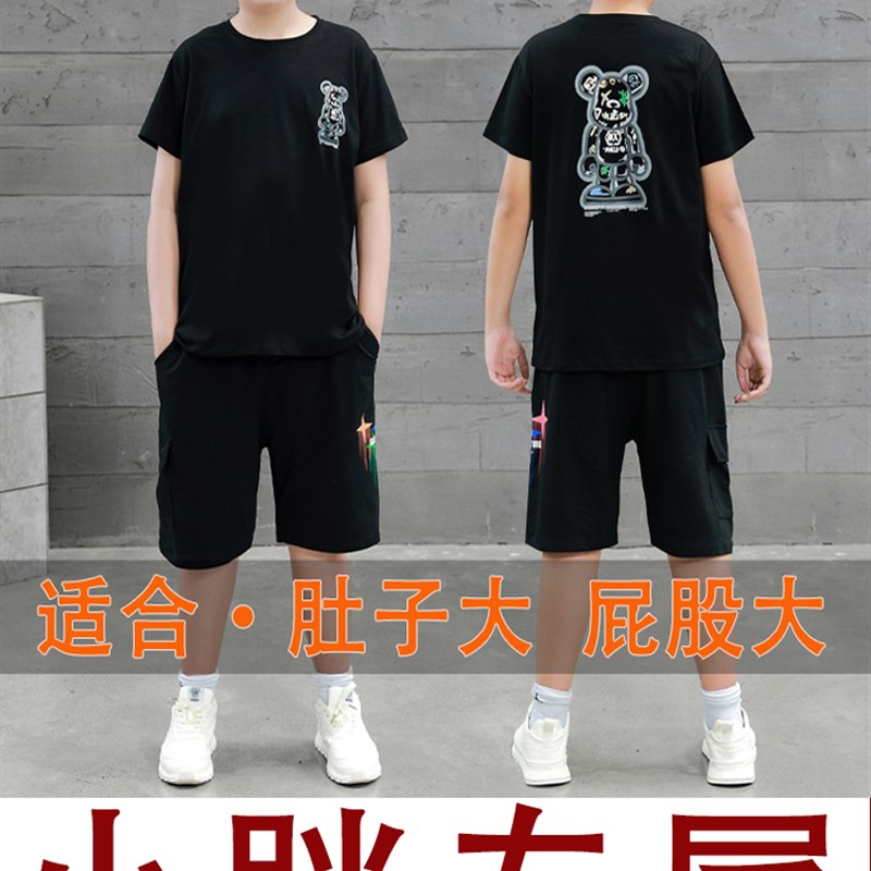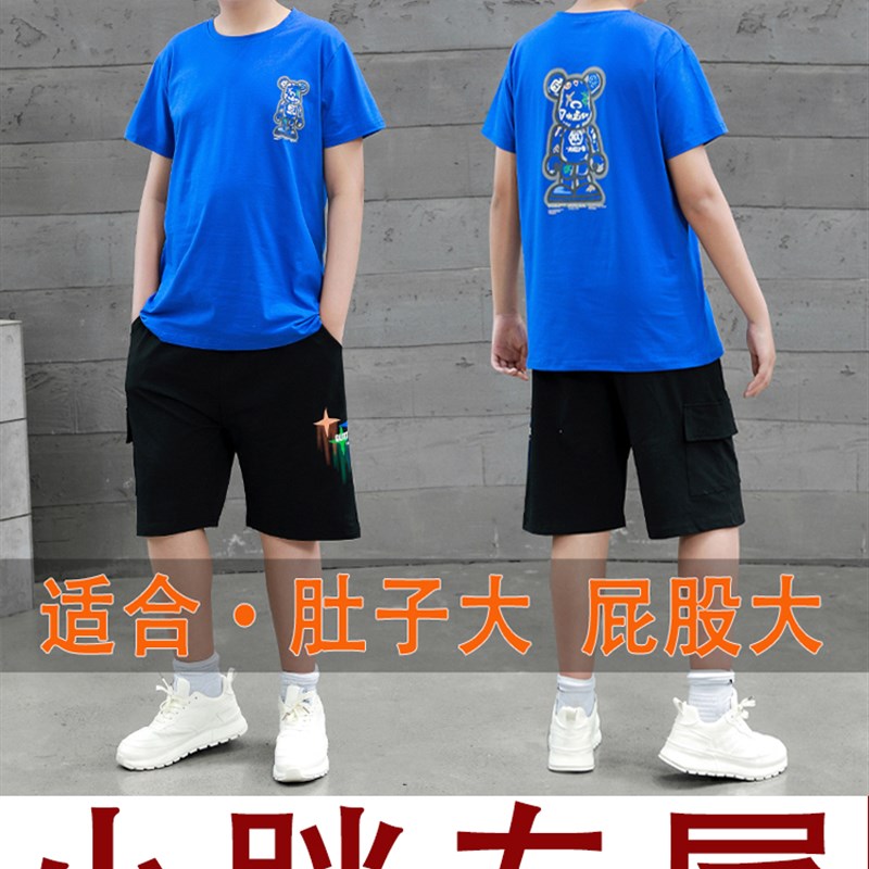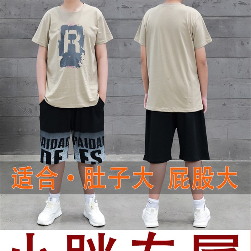 胖男孩短袖套装加胖加码夏季连衣裙胖男孩纯棉t恤短裤两件套宽松