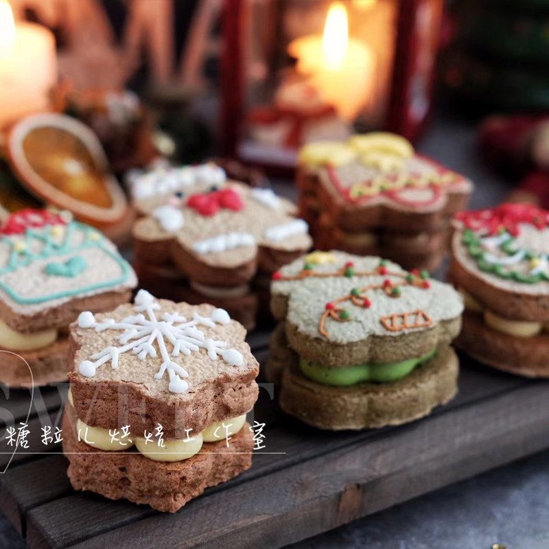 常规厚度1cm圣诞达克瓦兹模 姜饼人花环树礼物雪花铃铛点心小工具