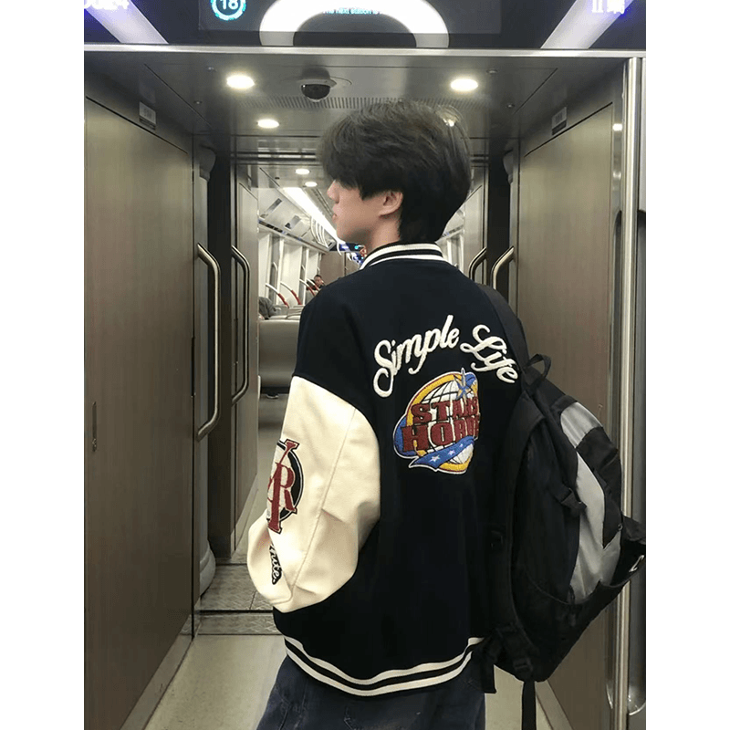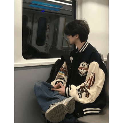 美式复古重工字母刺绣棒球服夹克