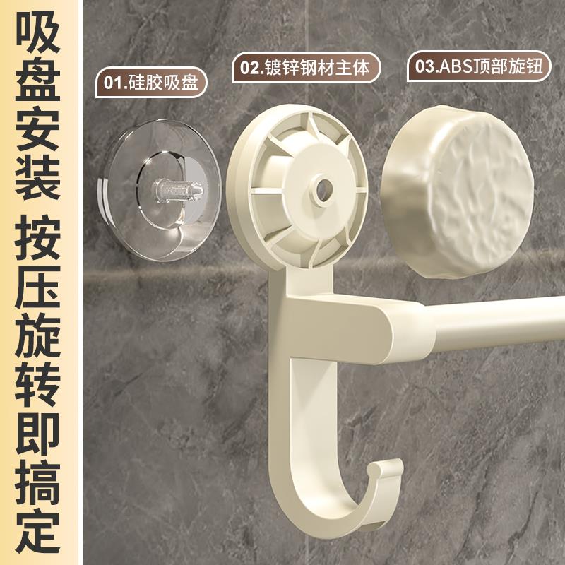 吸盘毛巾架浴室卫生间厕所免打孔晾挂浴巾手巾太空铝挂杆置物架子