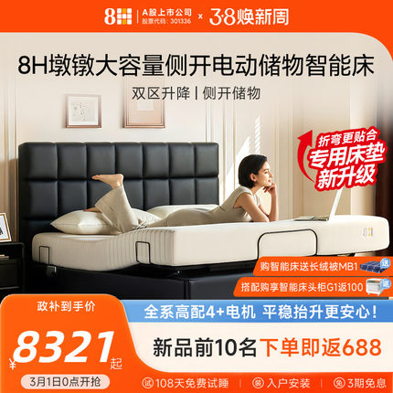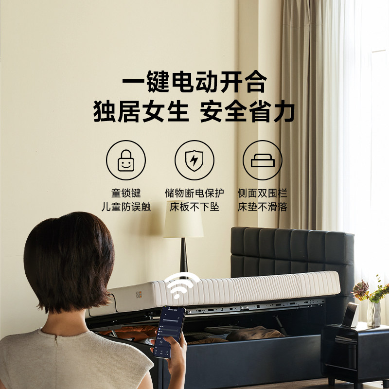 【新品】8H储物智能床电动升降轻奢双人床黑科技大容量侧开储物床