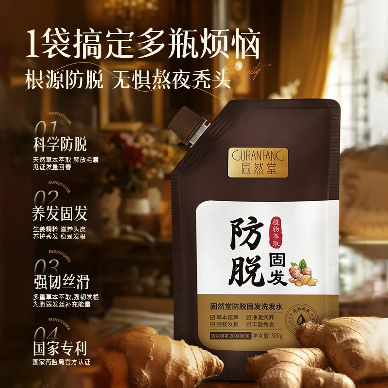 固然堂【3袋装】生姜防脱洗发水萃取植物精华韧发防秃头育发固发