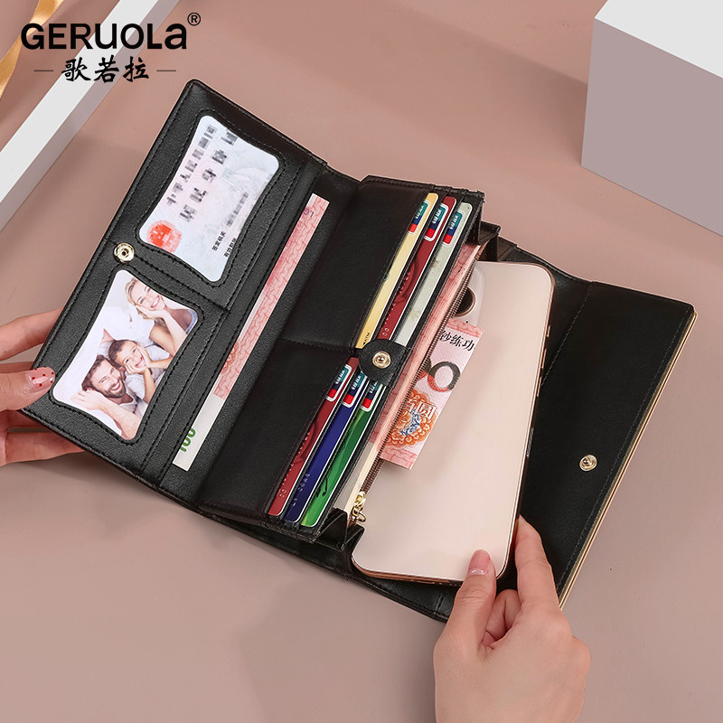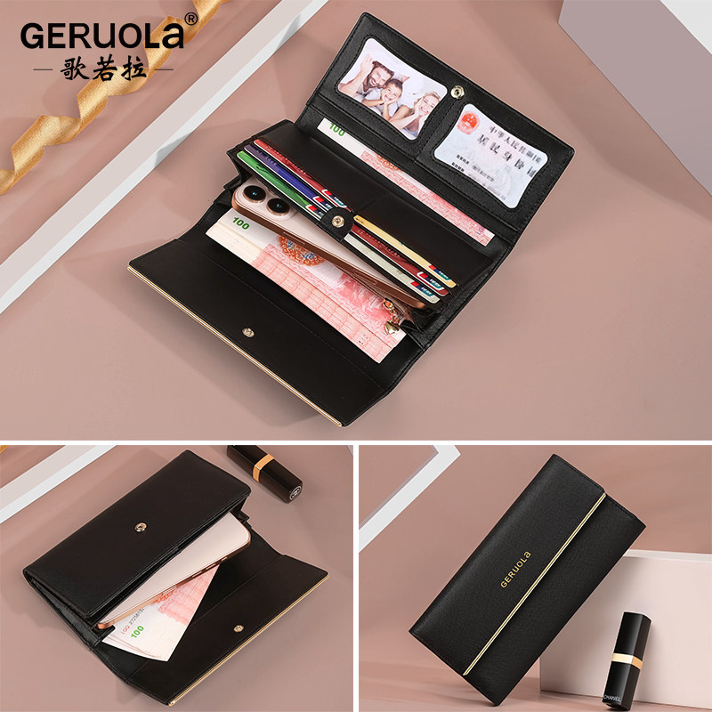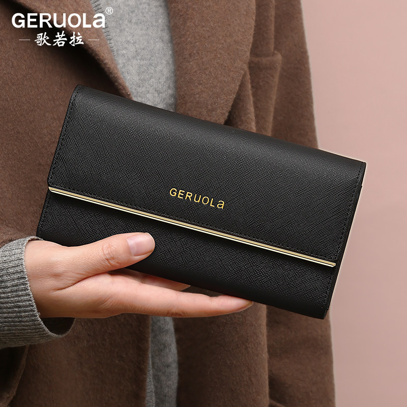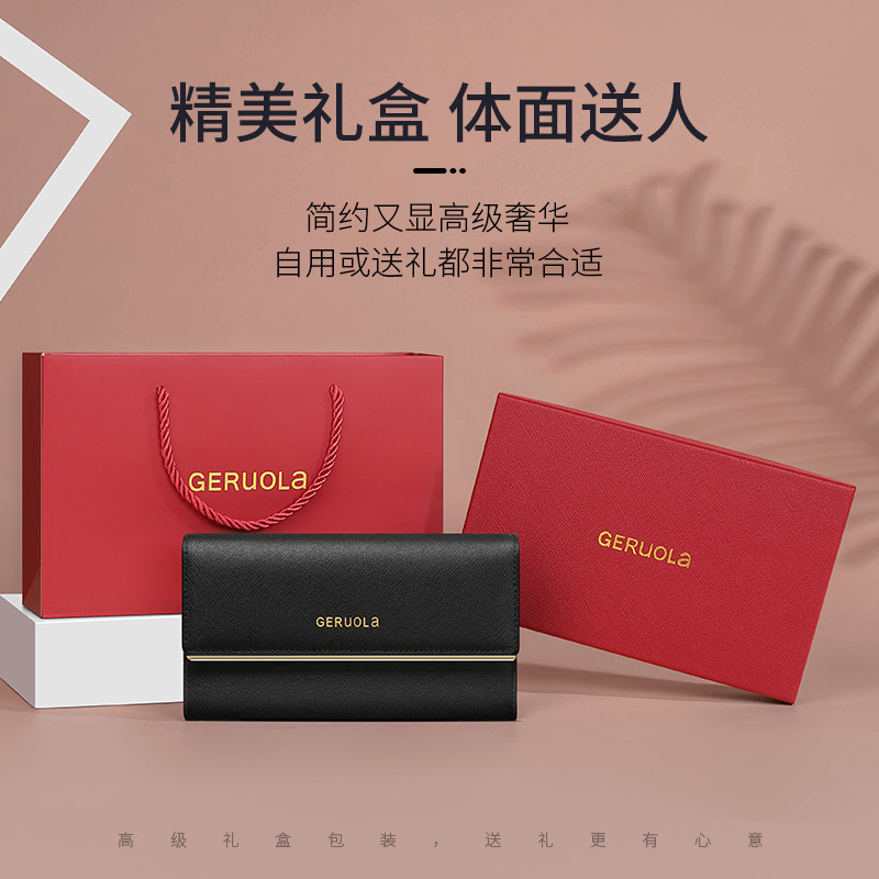 品牌钱包女2025新款长款真皮时尚简约三折手拿包送母亲女士手包