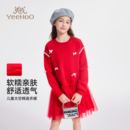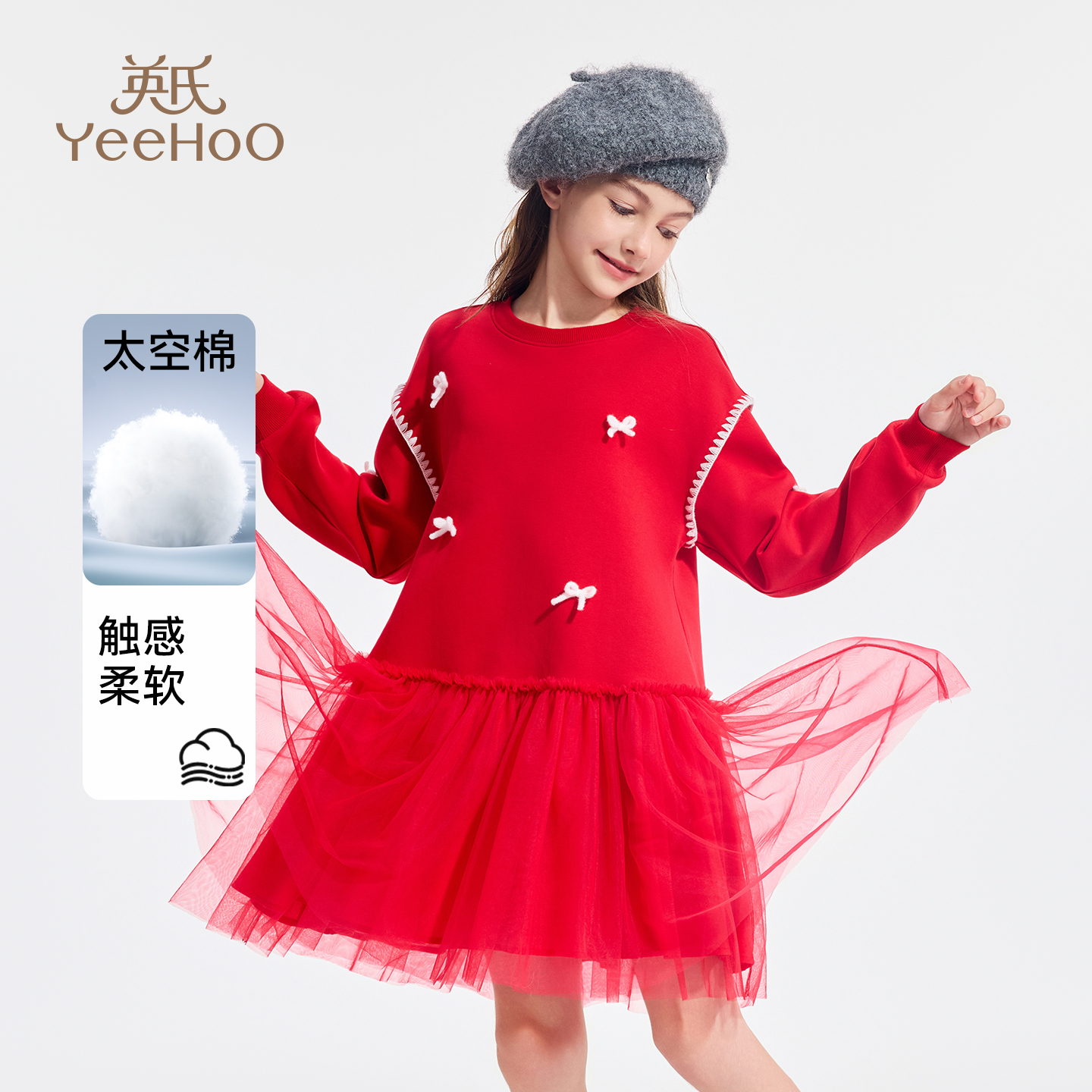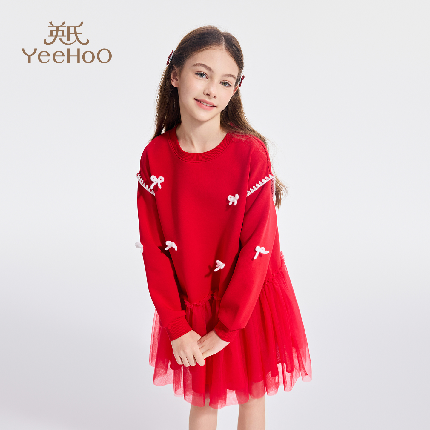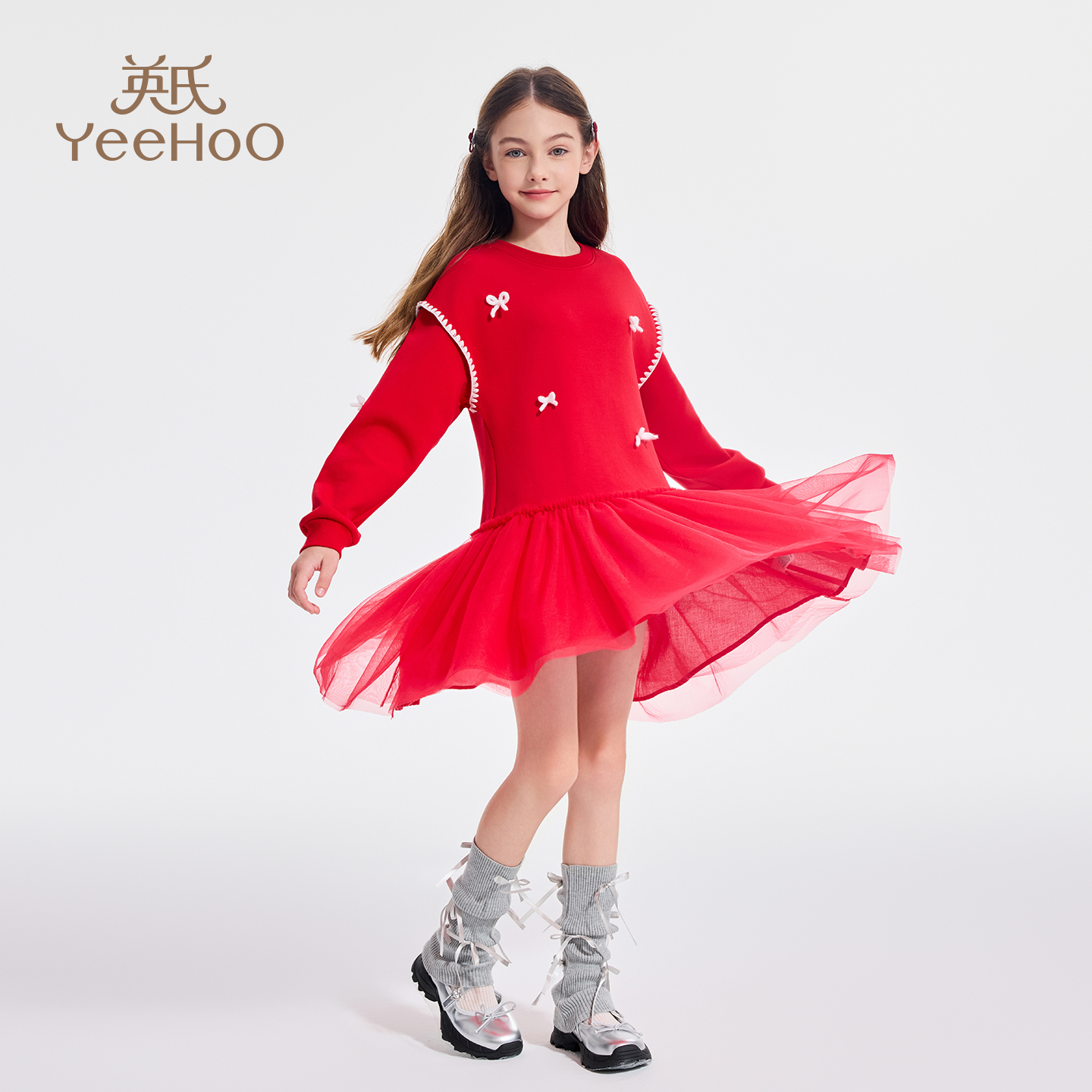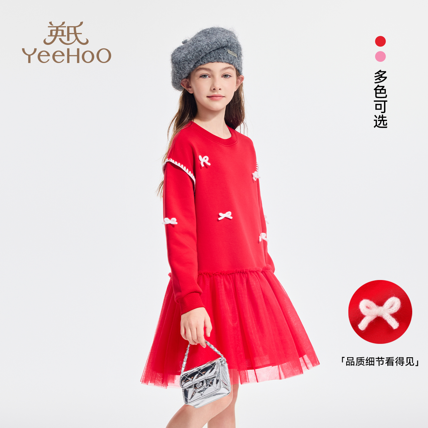 英氏女童连衣裙2025早秋新款儿童洋气时髦裙子中大童秋装公主裙潮