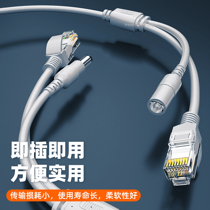 赢潜 网线带电源一体线二合一视频加长带水晶头成品线网络综合线适用监控摄像头大华莹石tp-link普联