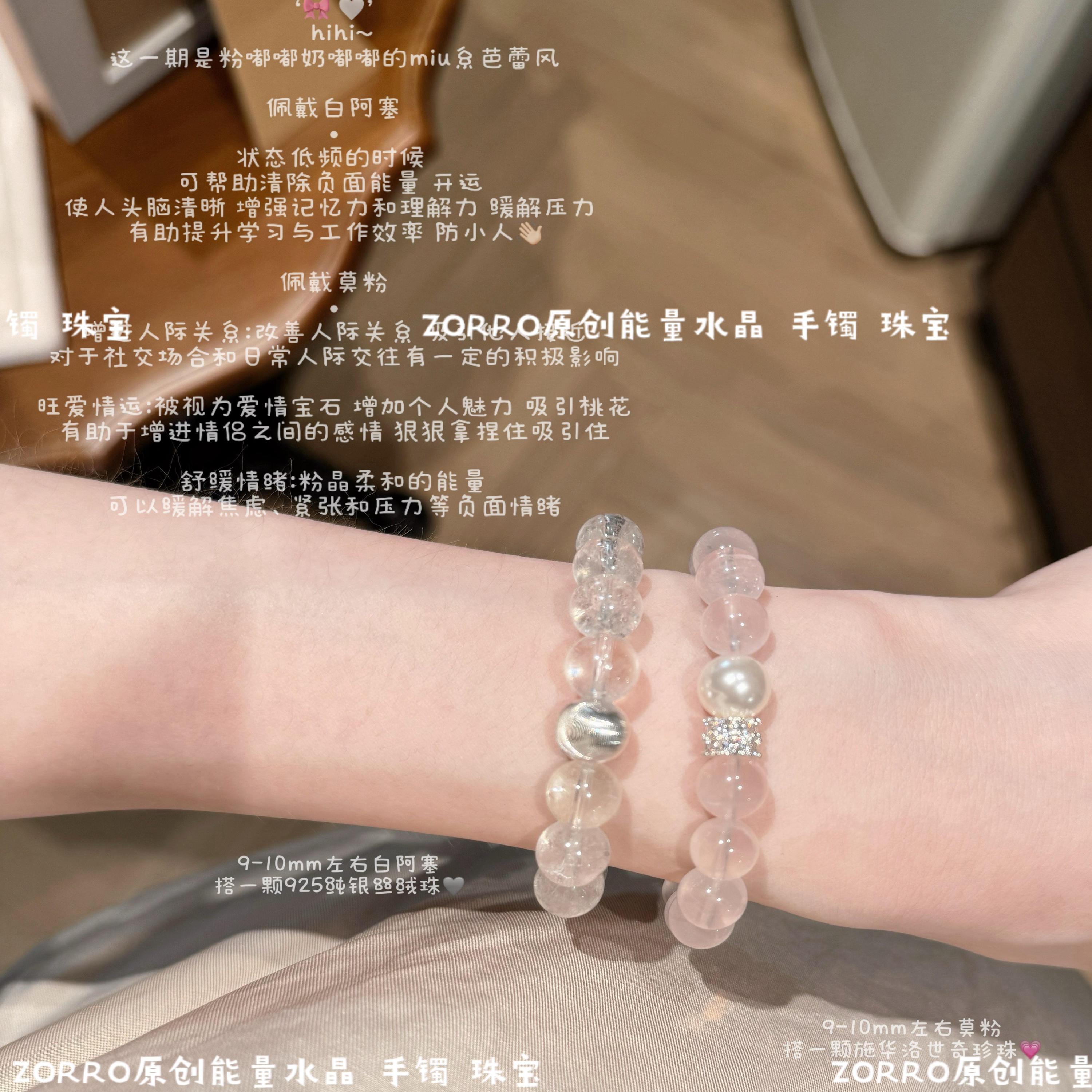 原创丨天然白阿塞手串莫粉水晶清冷风手链小众女友闺蜜送生日礼物