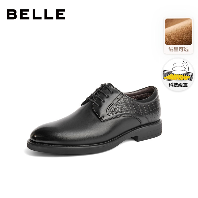 百丽男鞋商务皮鞋正装鞋冬新款商场同款加绒新郎婚鞋8ML01DM4